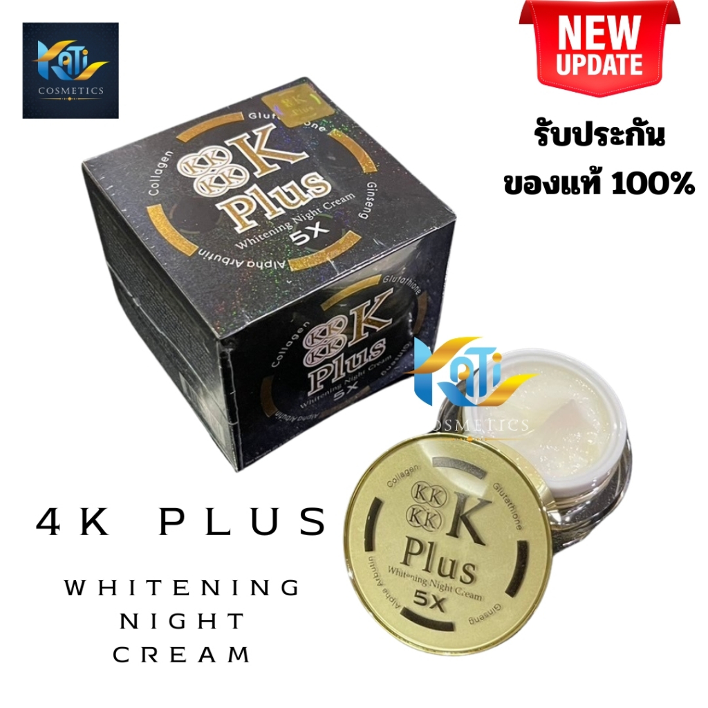 4K Plus 5X Whitening Night Cream ครีมบำรุงผิวหน้า ไนท์ครีม 4K NEW โฉมใหม่ ( กล่องดำ ) 20 g.