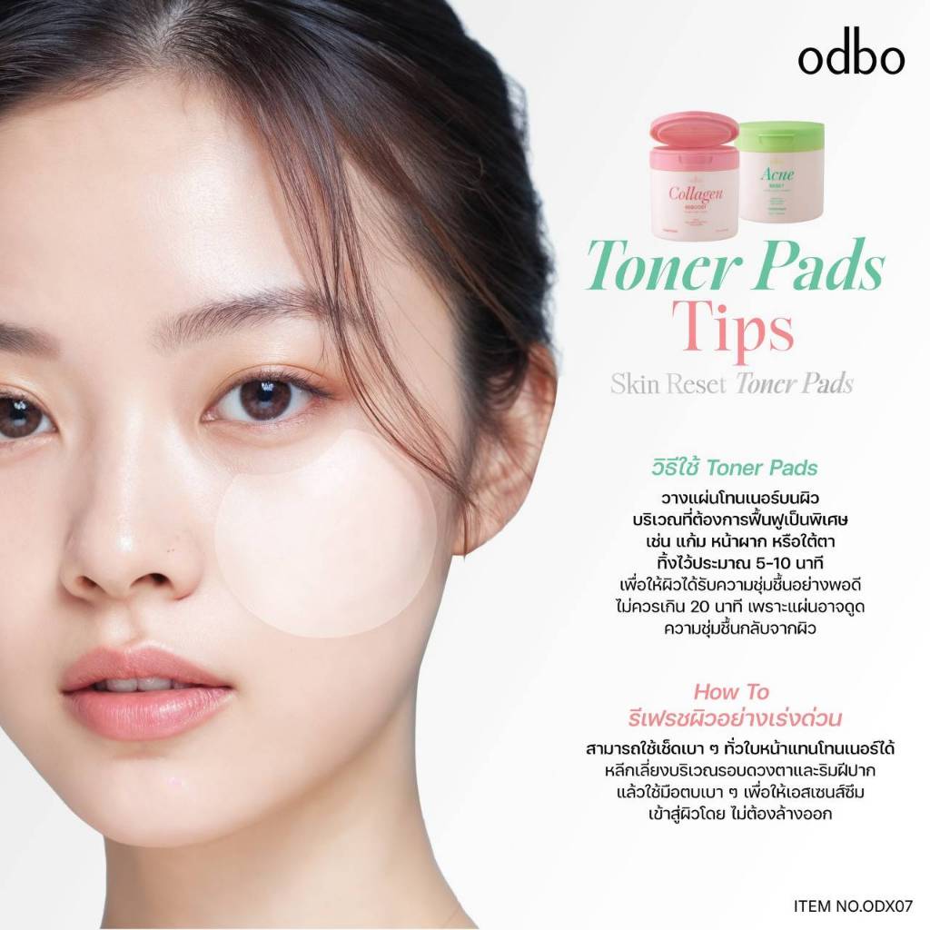 โทนเนอร์แพด โอดีบีโอ odbo Skin Reset Toner Pads ( 1 กระปุก บรรจุ 120 แผ่น ) มีให้เลือก 2 สูตร #ODX07
