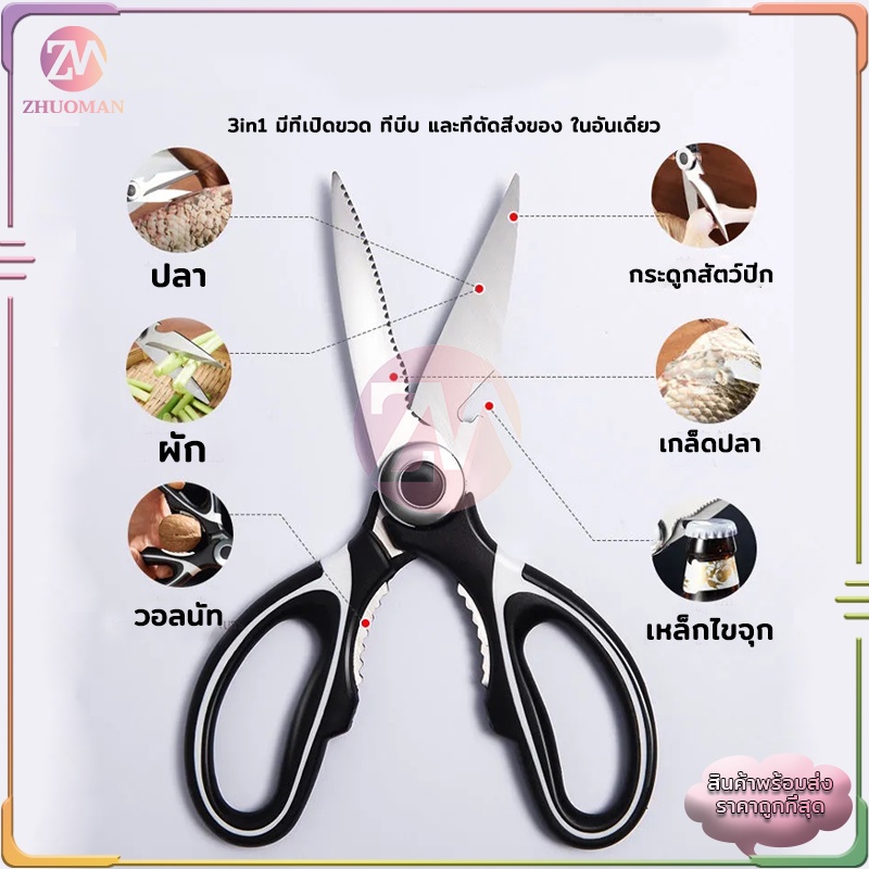 กรรไกรสแตนเลส สารพัดประโยชน์ สแตนเลสอย่างดี สะดวกสบายในการถือน้ำหนักเบากันสนิมและทนทาน
