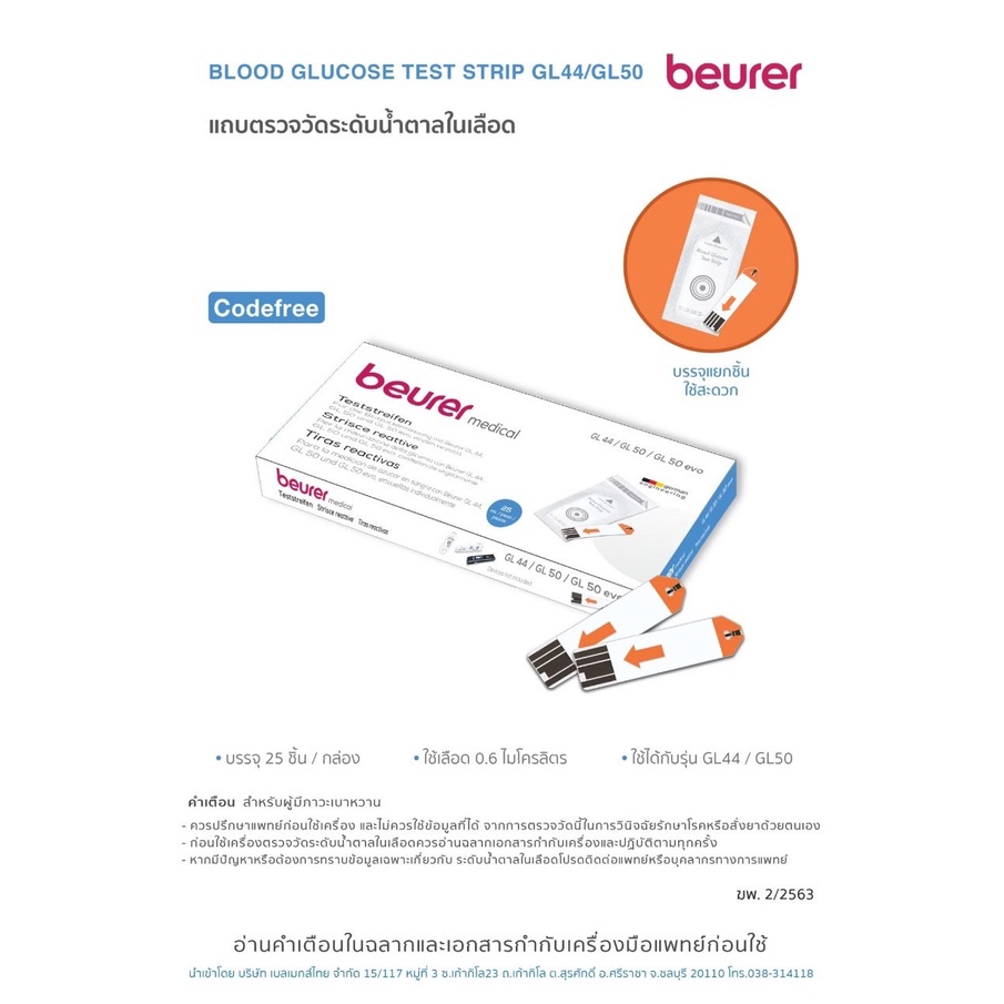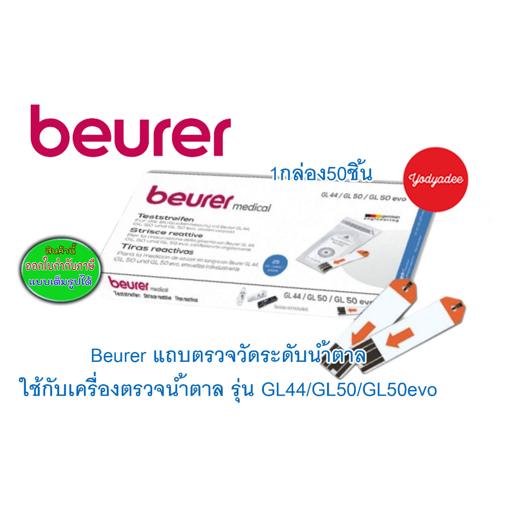 แถบวัดระดับน้ำตาลในเลือด BEURER GL44 50 ชิ้น สำหรับเครื่องวัดน้ำตาล Beurer GL44/GL50/GL50evo 87516