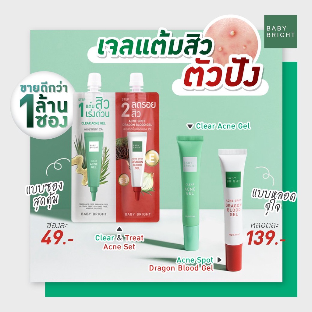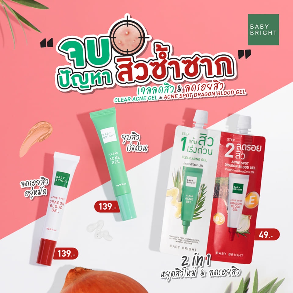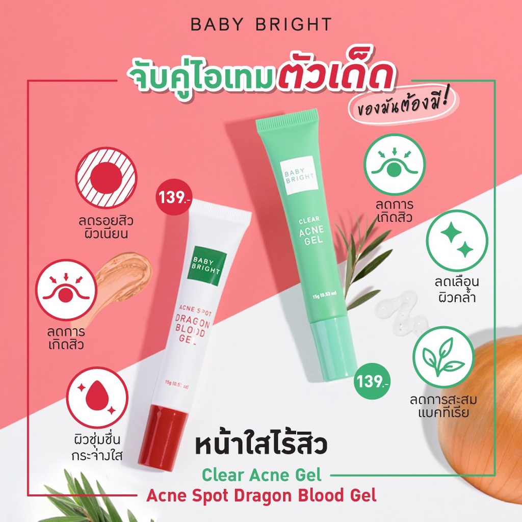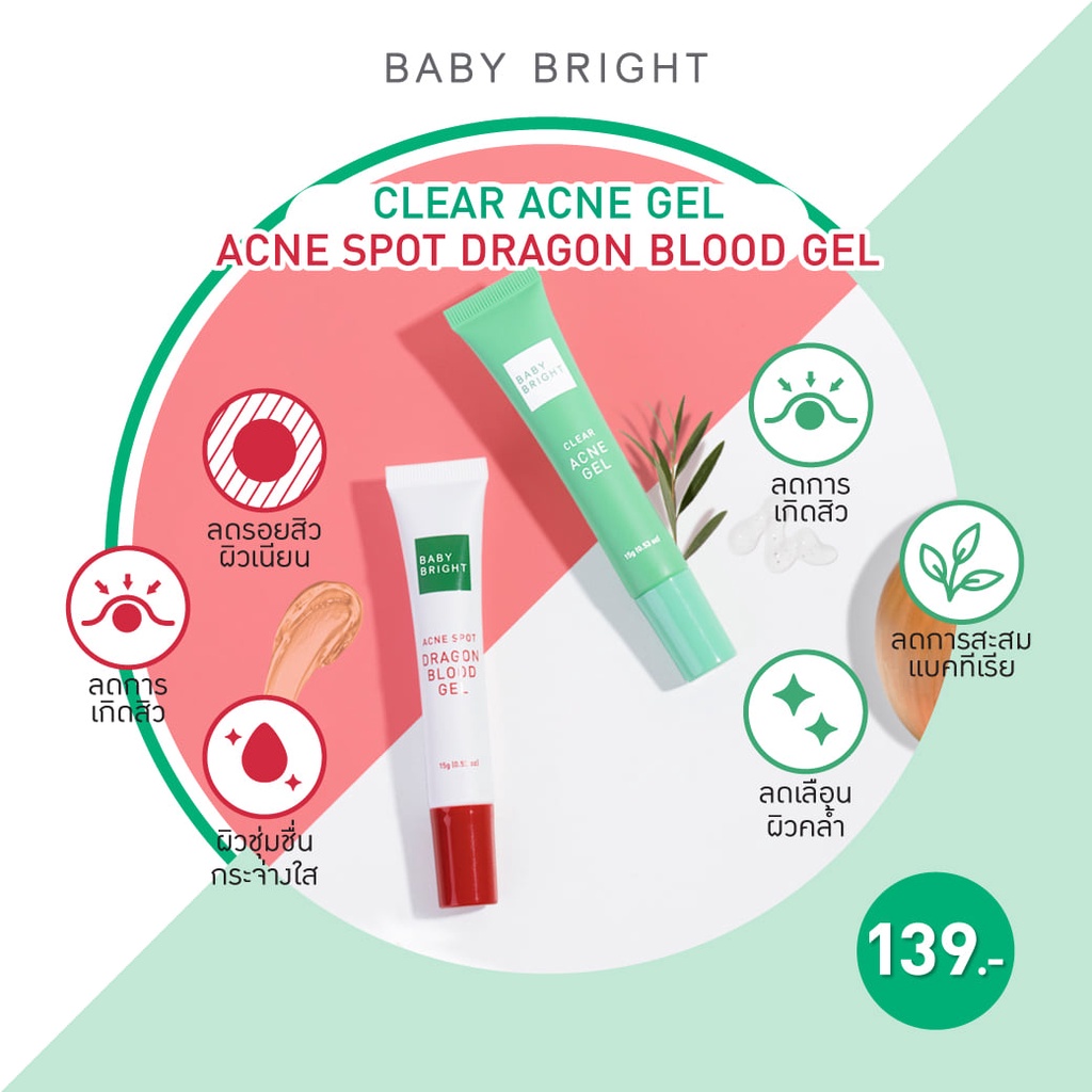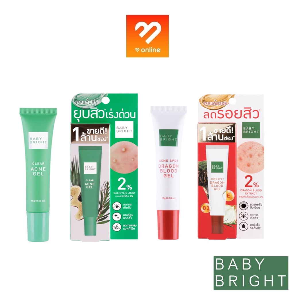 (หลอด 15g.) Baby Bright Clear Acne / Acne Spot Dragon Blood Gel 15g. เบบี้ไบร์ท แอคเน่เจล เจลแต้มสิว เจลลดรอยสิว