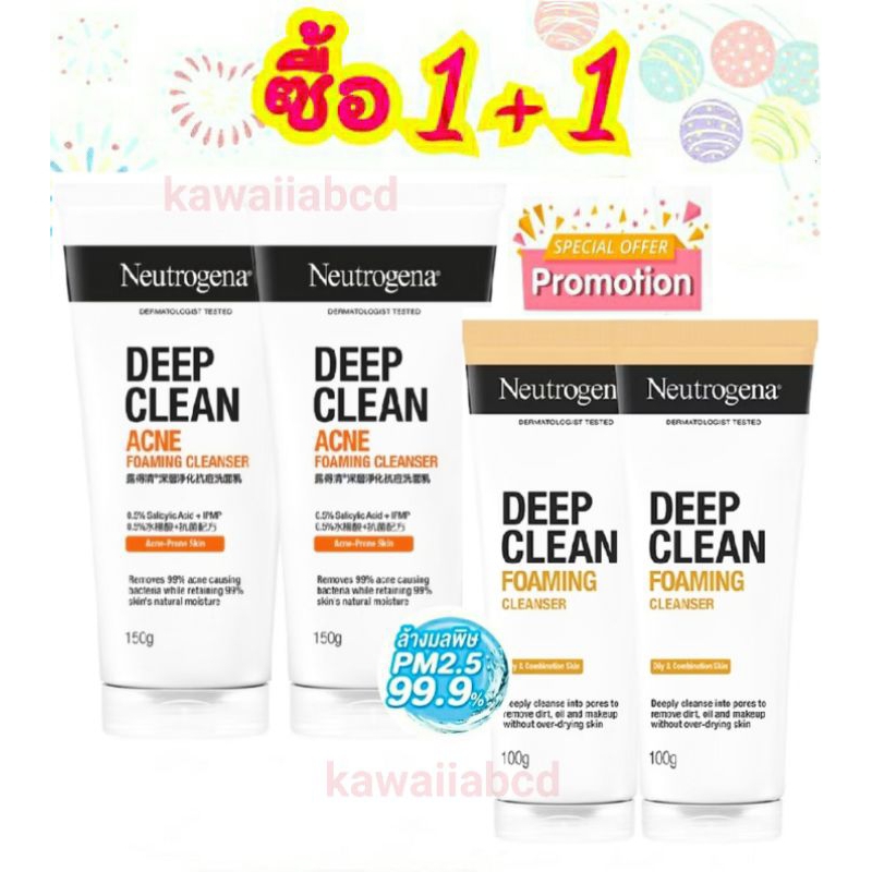 ⛅1 แถม 1⛅โฟมล้างหน้า นูโทรจีนา ดีพคลีน คุชชั่นโฟม Neutrogena Deep Clean Cushion Acne Gentle นูโทรจีน่า หน้าขาว ดีบคลีน