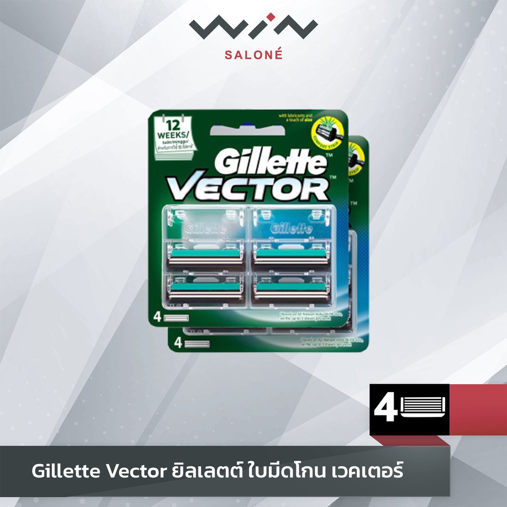 Gillette Vector ยิลเลตต์ ใบมีดโกน เวคเตอร์ 4 ชิ้น ใบมีดคู่ สำหรับโกนหนวด