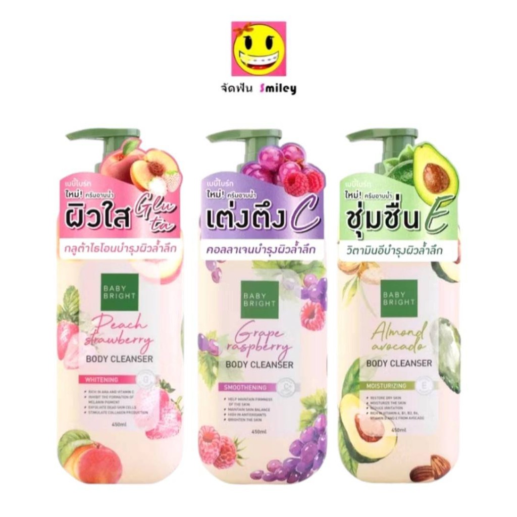 ครีมอาบน้ำ เบบี้ไบร์ท เกรฟราสเบอร์รี่/ อัลมอนด์อะโวคาโด/ พีชสตรอเบอร์รี่ Baby Bright Body Cleanser 450ml.a