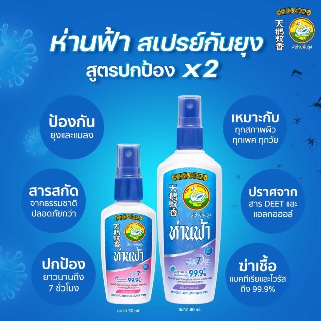 ห่านฟ้า สเปรย์กันยุง สารสกัดจากธรรมชาติ 30/80 มล.
