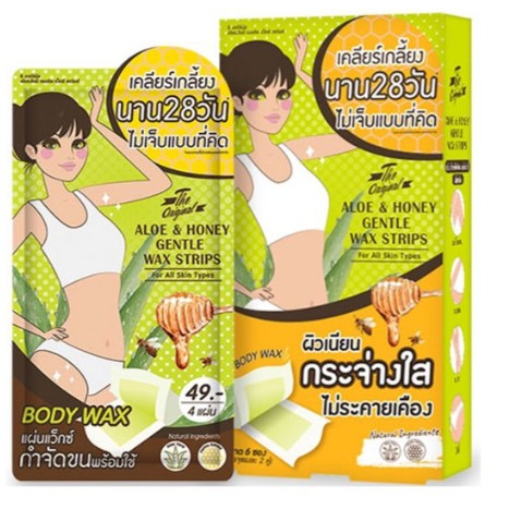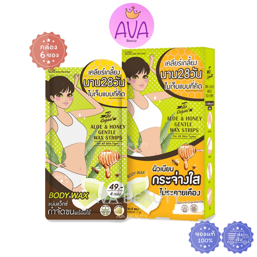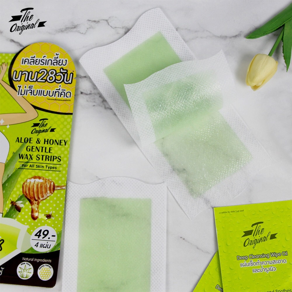 (4แผ่น/6ซอง/กล่อง) The Original Aloe&Honey Gentle Wax Strips ดิ ออริจินัล แผ่นแว็กตัว กำจัดขน [0921]