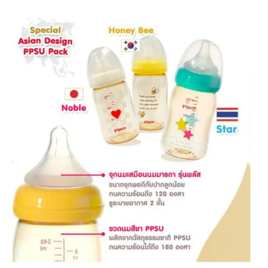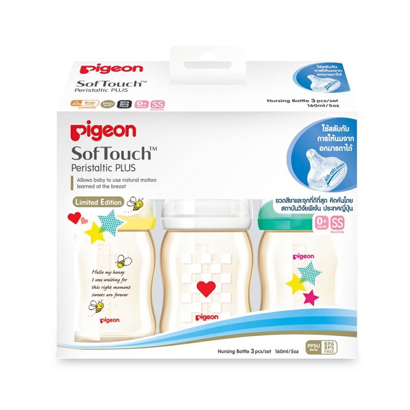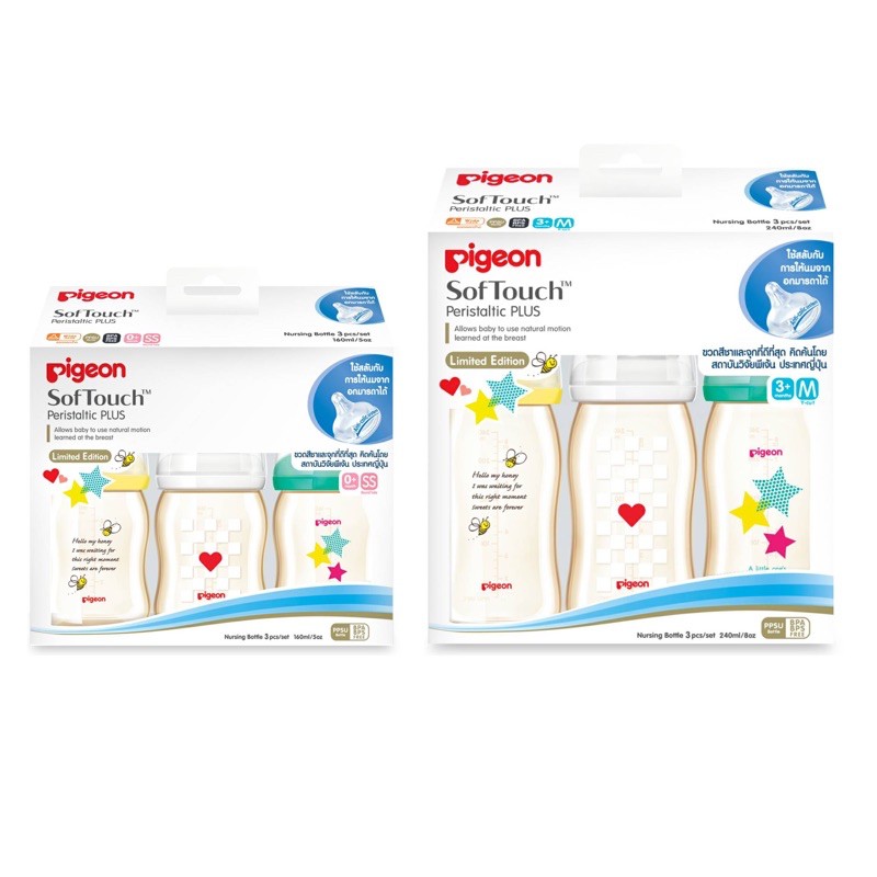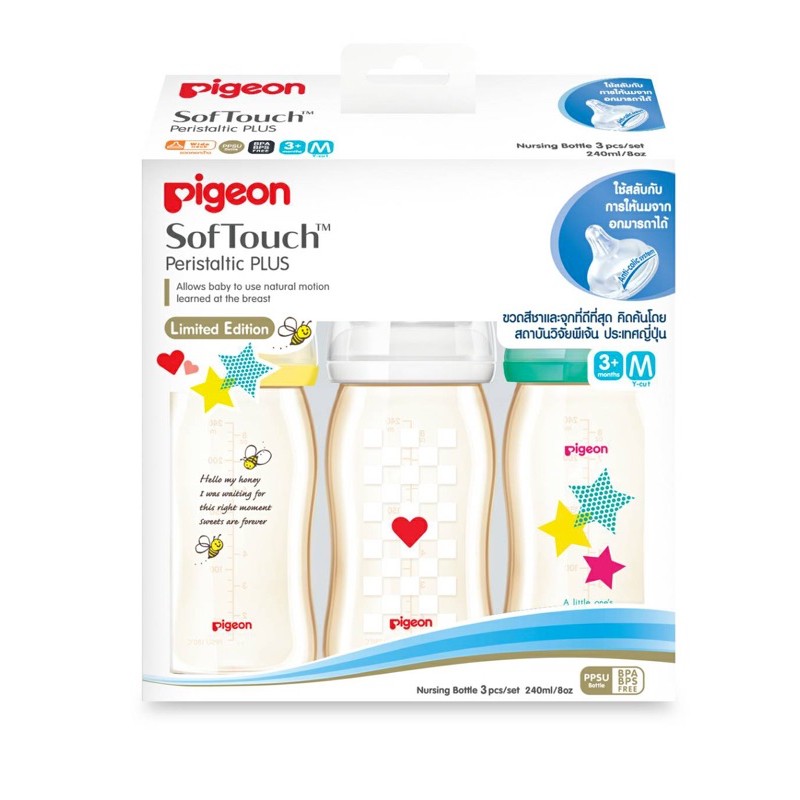 [แพ็ค3ขวด] Pigeon พีเจ้น ขวดนม PPSU "Limited Edition" คอกว้าง พร้อมจุกซอฟท์ทัช รุ่นพลัส แพ็ค 3 ขวด ***ล้างสต็อค
