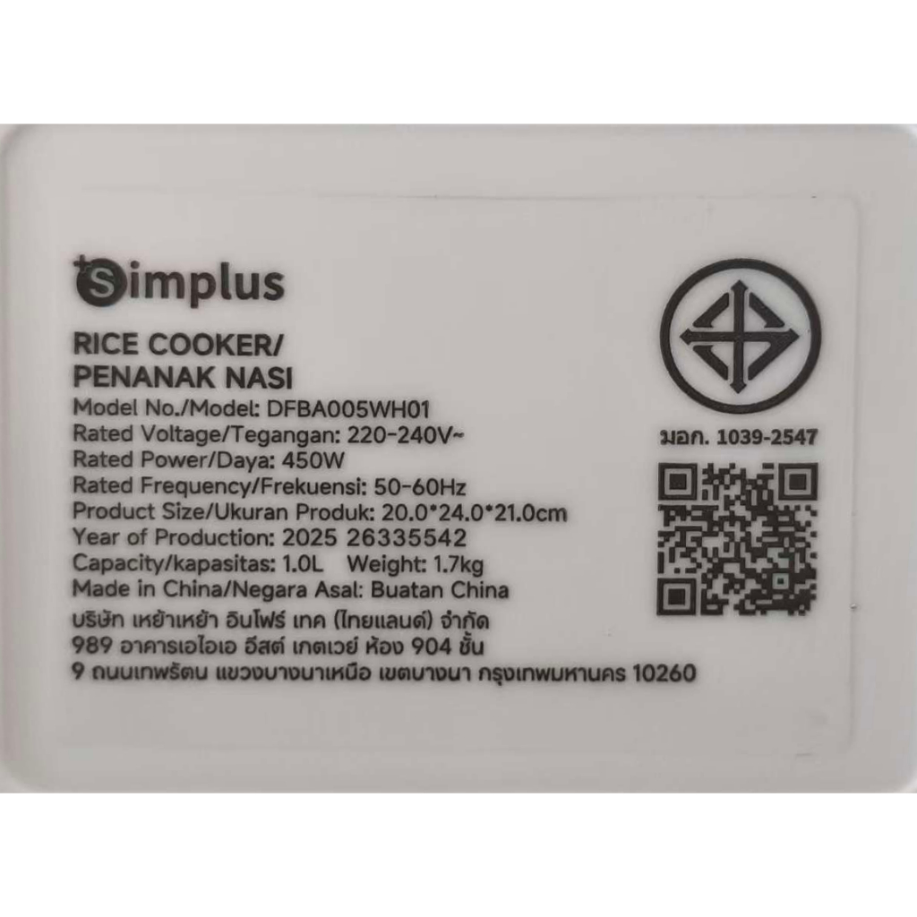 [สินค้ามีการอัปเกรดแผงภาษาไทย]Simplus หม้อหุงข้าว 9 ฟังก์ชั่น 24 ชั่วโมง หน้าจอ LED 3D กันความร้อน กันไหม้ และความร้อนสูง Rice Cooker DFBA005
