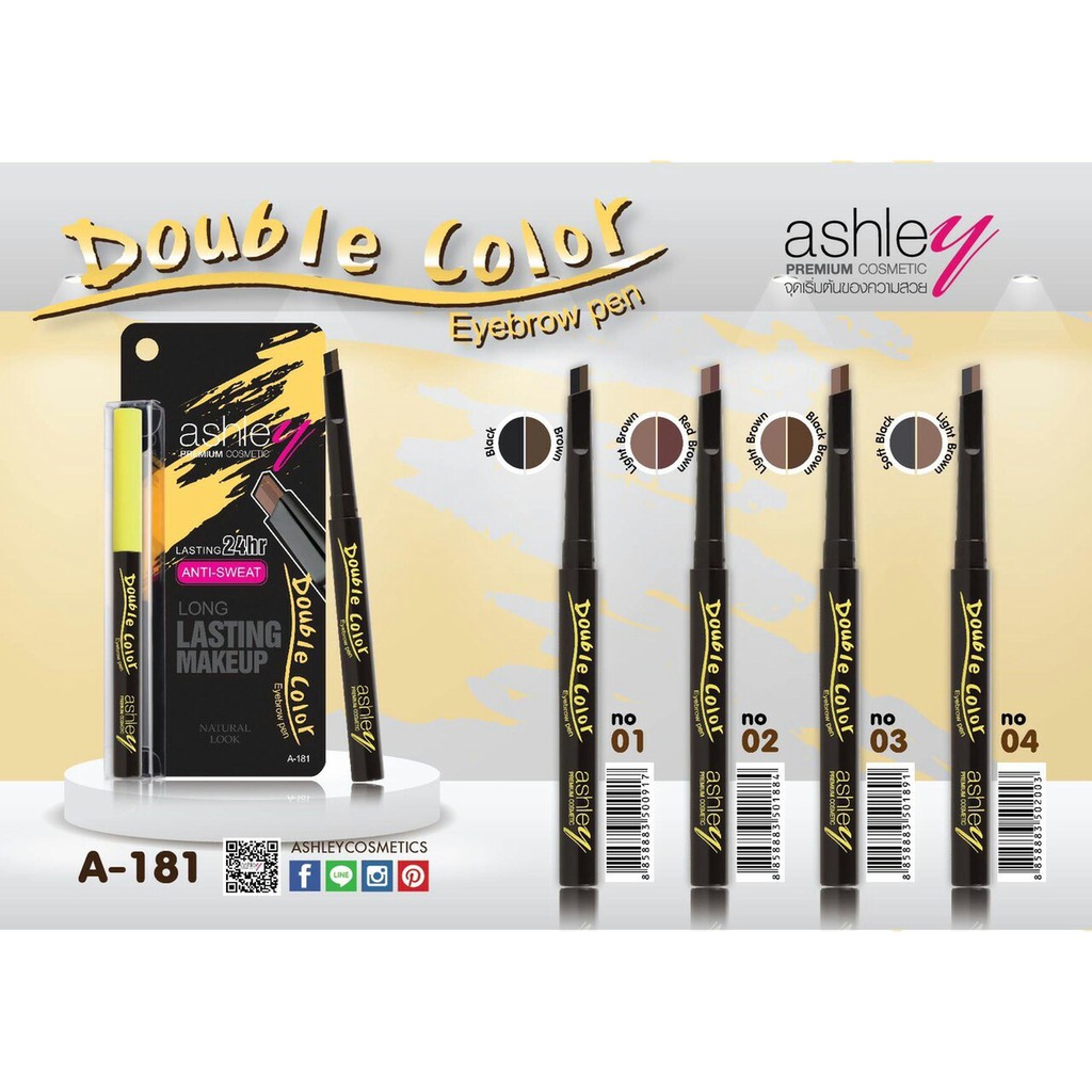 🌟 ดินสอเขียนคิ้วหัวตัด สองสีในแท่งเดียว แอชลีย์ ASHLEY DOUBLE COLOR EYEBROW PEN A-181