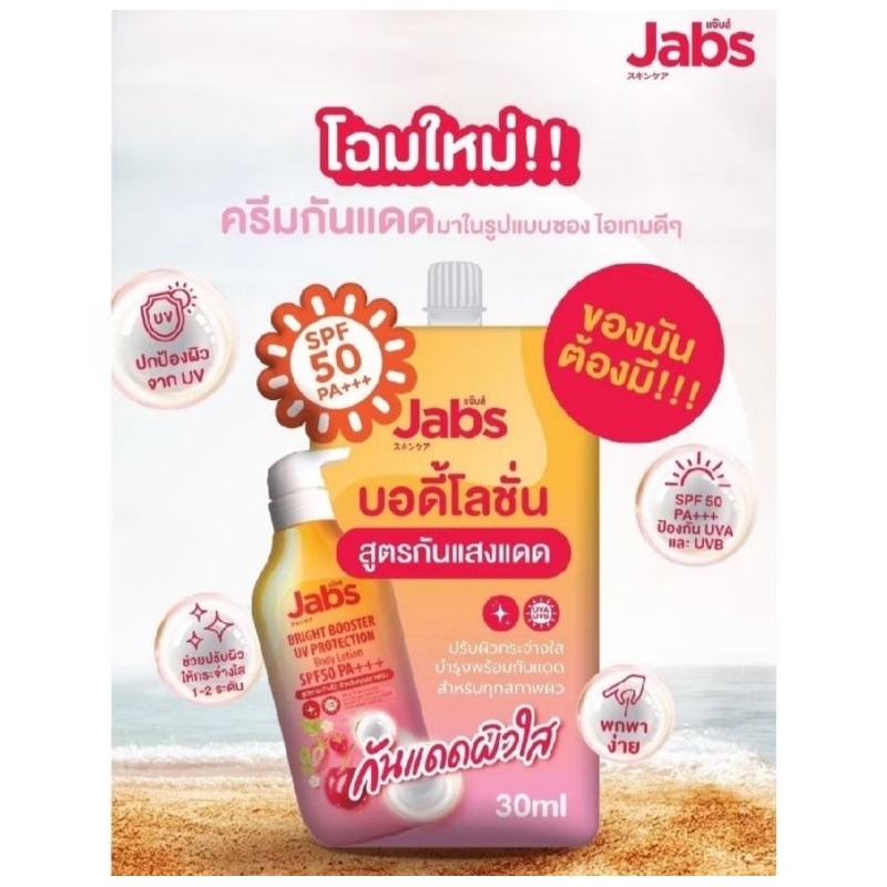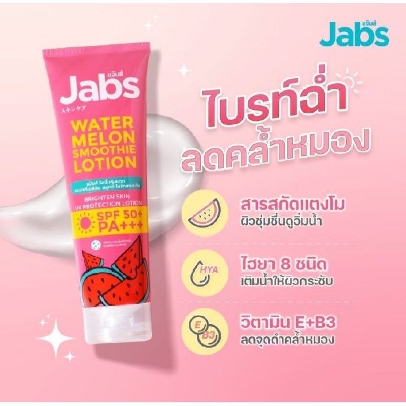 ส่งฟรี/มีไลฟ์ 1 ซอง โลชั่น Jabs กันแดด Jabs Bright Booster&Watermelon Smoothie Lotion SPF50 PA+++ ครีมกันแดด