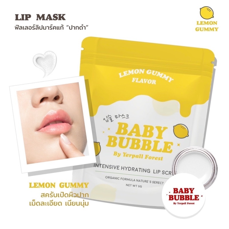 ลิปมาส์ก / สครับปาก เบบี้บับเบิ้ล ลิปแก้ปากดำ Baby Bubble Intensive Hydrating Lip Scrub 5 g