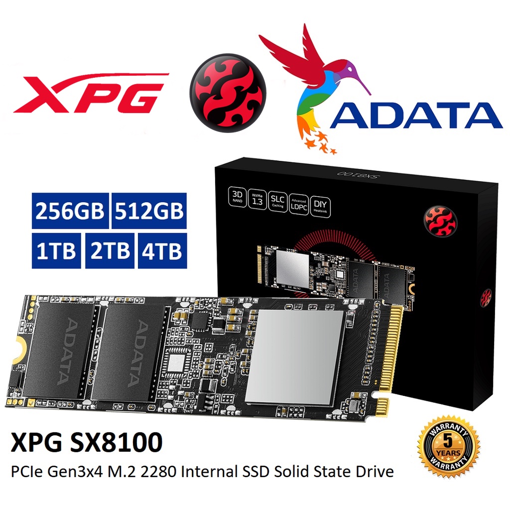 1TB SSD (เอ สเอสดี) XPG SX8100 PCIe Gen3x4 M.2 2280 3500/3000MB/s read and write ประกัน 5 ปี