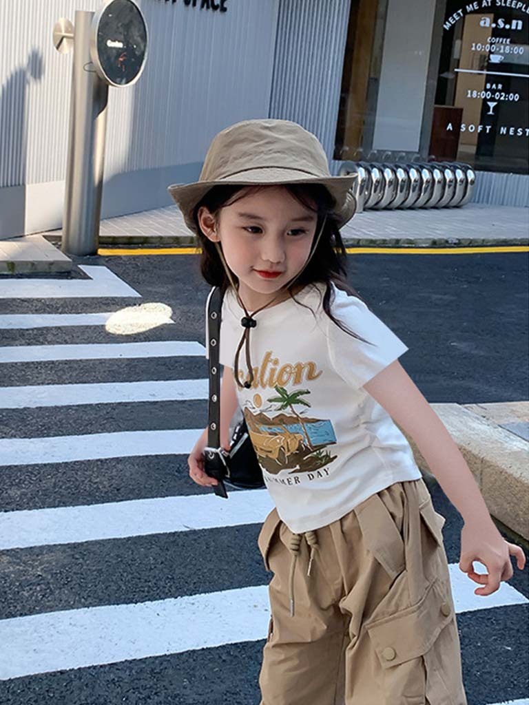 2-12 ปี เด็กหญิง T ชุดเสื้อ สไตล์เกาหลี ชุดเสื้อผ้าเด็กผู้หญิงฤดูร้อนนุ่มระบายอากาศ ผ้าเรยอน านุ่มใสสบายฯ ชุดเซ็ทเด็กแ