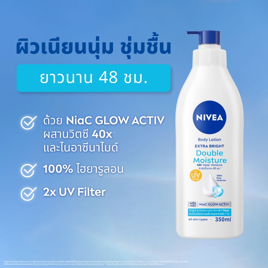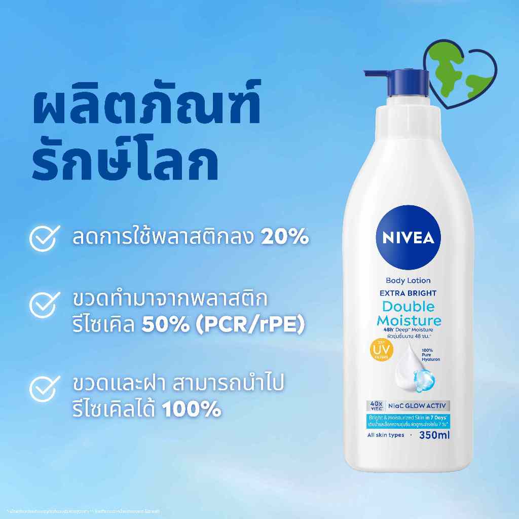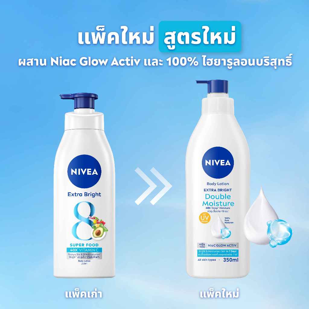 นีเวีย บอดี้ โลชั่น เอ็กซ์ตร้า ไบรท์ ดับเบิ้ล มอยส์เจอร์ 350 มล. 2ชิ้น NIVEA