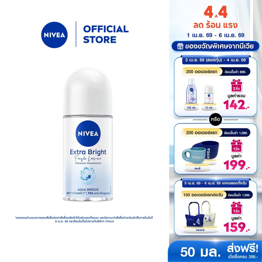 นีเวีย เอ็กซ์ตร้า ไบรท์ เฟรช ลาเวียร์ พรีเมียม ฟราแกรนซ์ อควา บรีซ โรลออน 50 มล. NIVEA โรลออนผู้หญิง deodorant