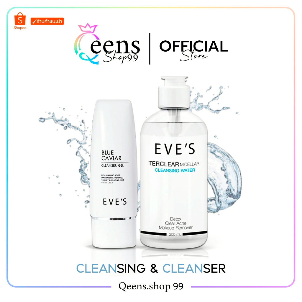 (📍กดในไลฟ์ถูกกว่า📍) EVE'S เซ็ตคู่ คลีนซิ่ง อีฟส์ 200 ml.เจลล้างหน้า บลูคาเวีย 60 ml. ทำความสะอาดผิวหน้า เครื่องสำอาง