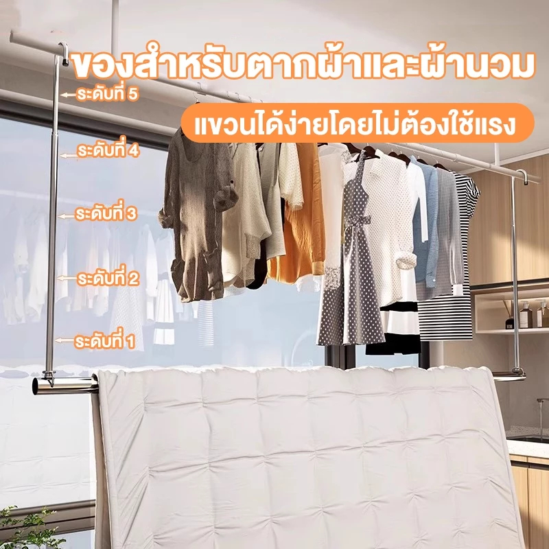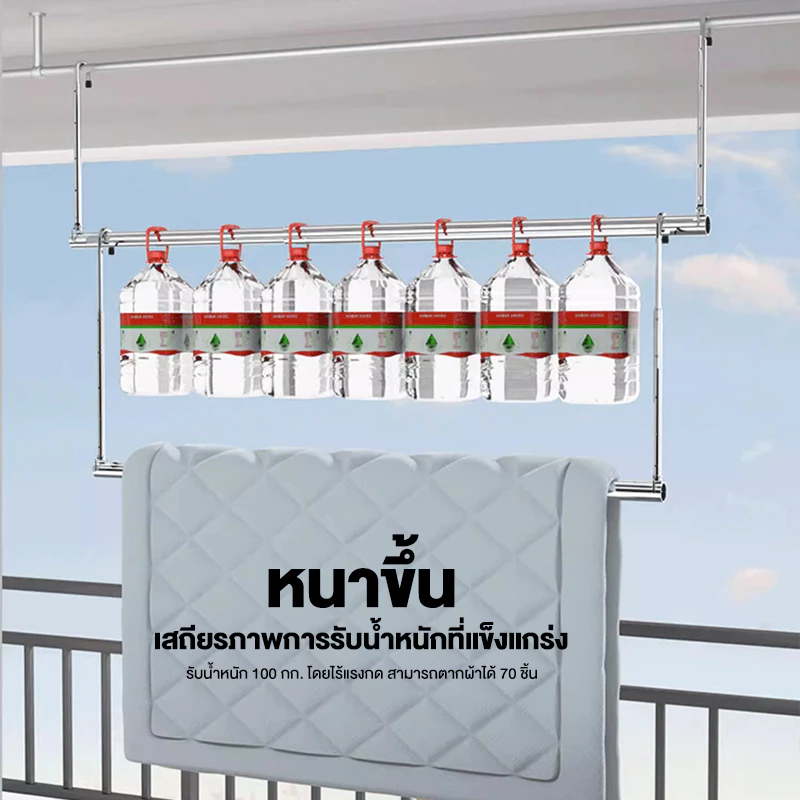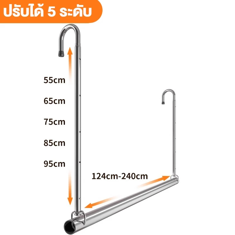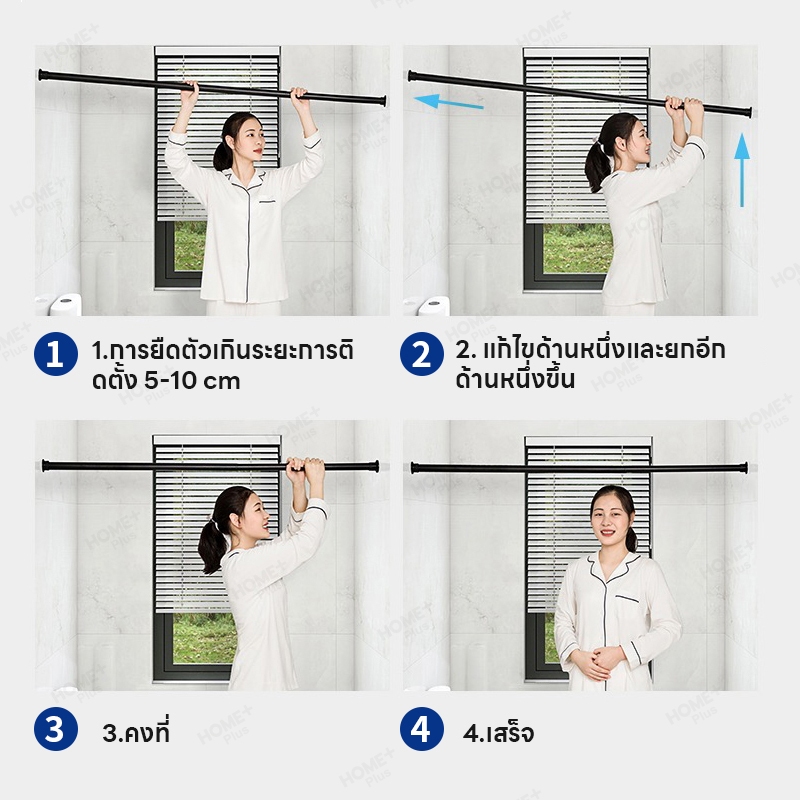 Homeplus ราวตากผ้า ราวแขวนผ้าเช็ดตัว ราวแขวนผ้ายืดได้ ปรับยืดความยาวได้ ไม่ต้องเจาะผนัง ราวแขวนผ้า ราวผ้าม่าน