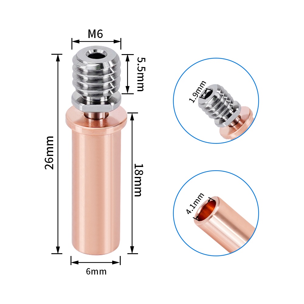 2/1Pcs V5AC Titanium alloy Bi-metal Throat Heat break Copper Plating Bimetallic For Anycubic Mega S/Pro VYPER Creality S