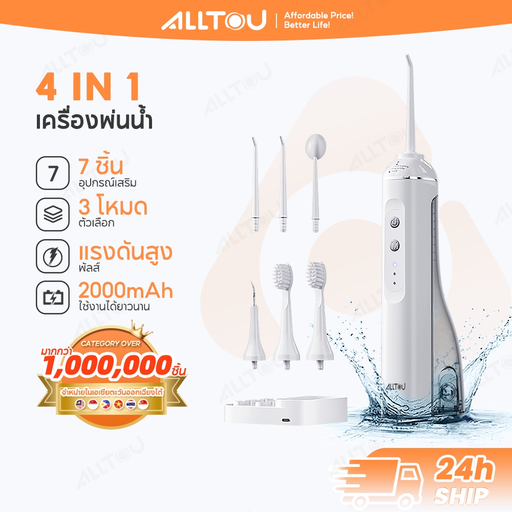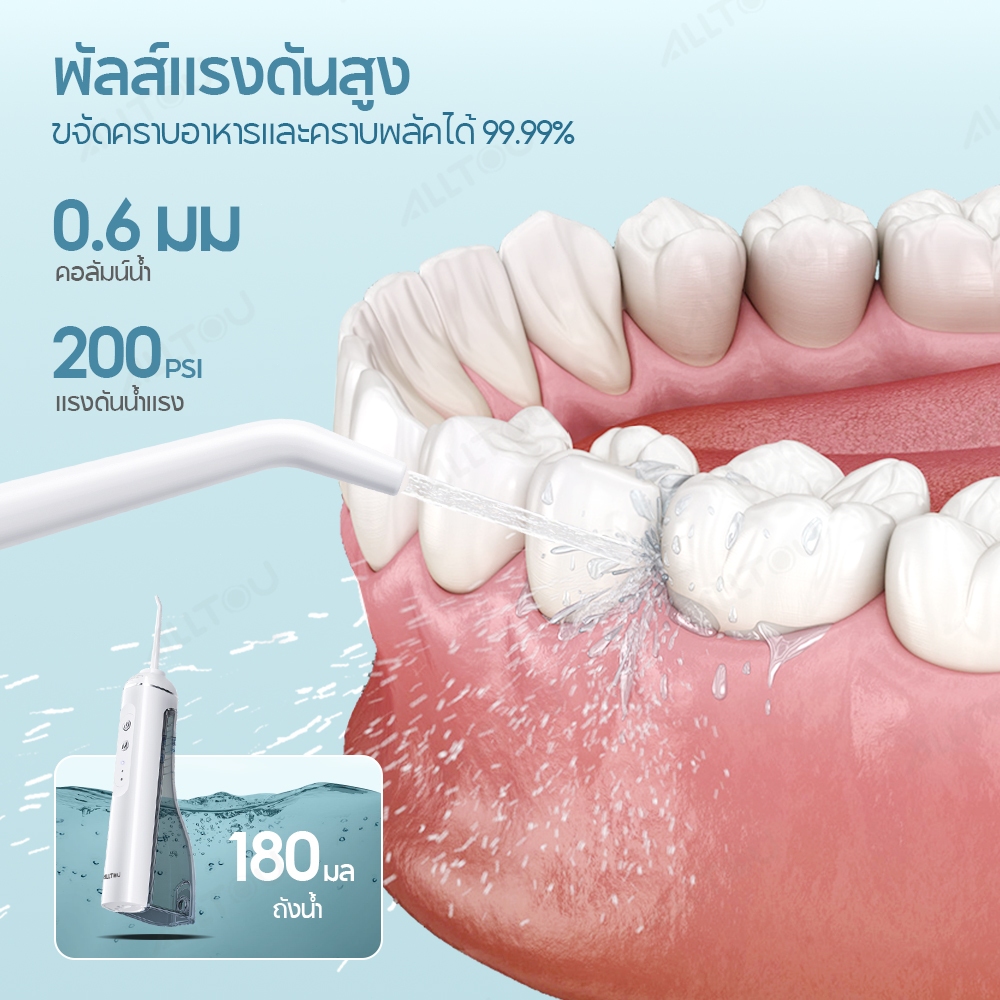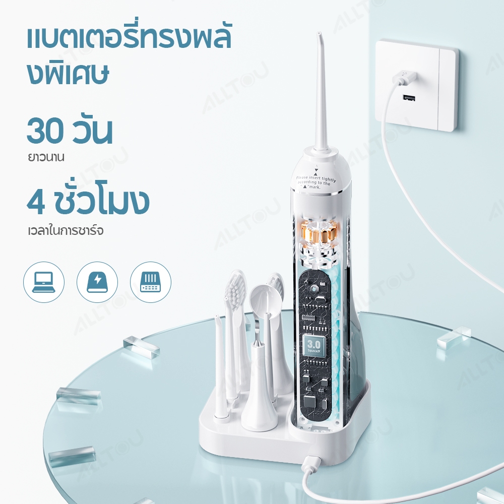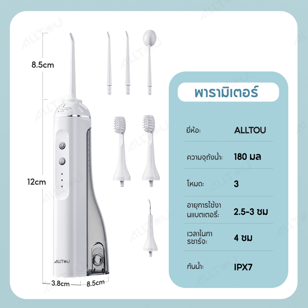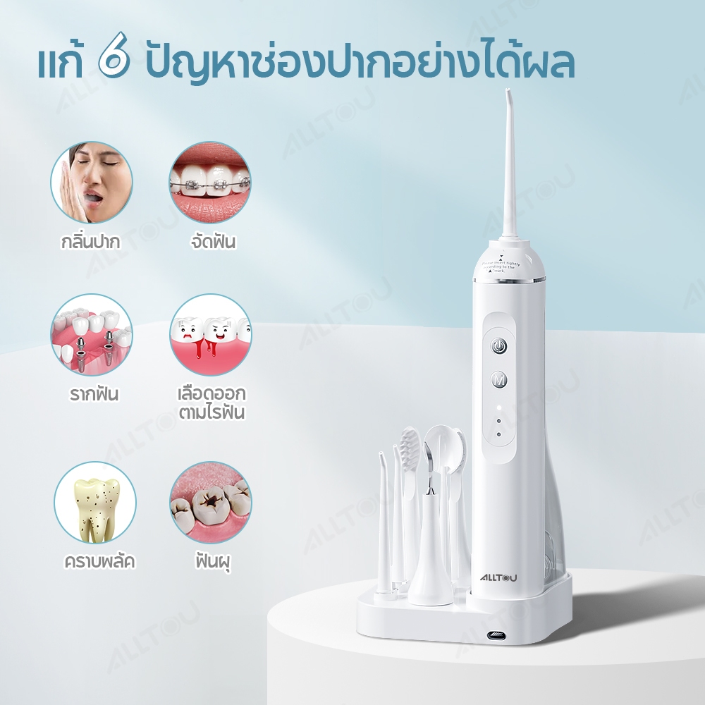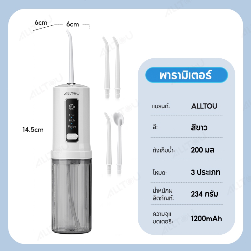 ALLTOU ไหมขัดฟันพลังน้ำ 4 IN 1 Water Flosser ถังน้ำความจุสูง 200 มล ไหมขัดฟันพลังน้ำ เครื่องขัดฟันพกพา แปรงสีฟันไฟฟ้า พอยท์แปรงสีฟัน(3โหมด + 4หัวฉีด + 2แปรงสีฟัน)