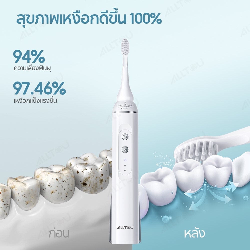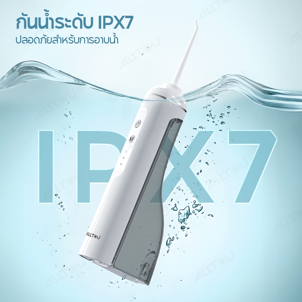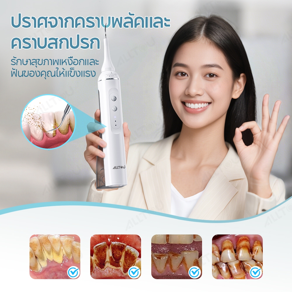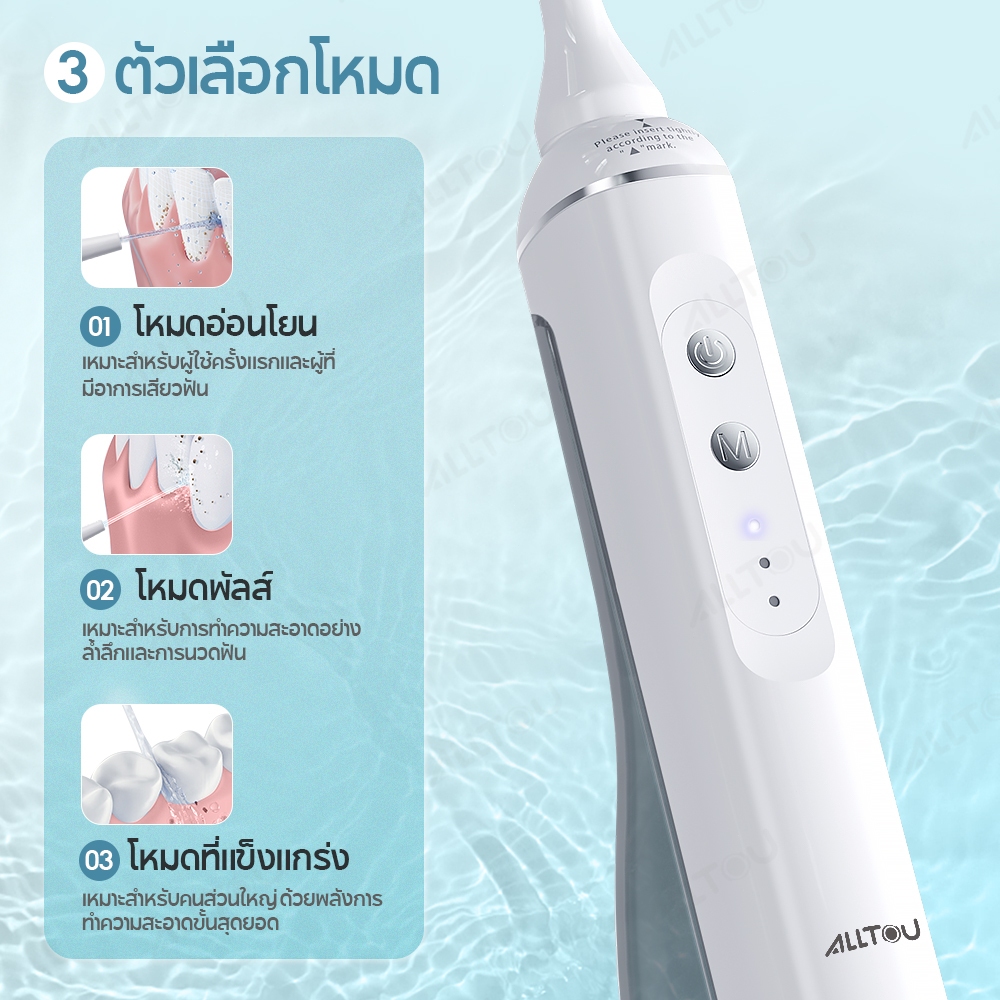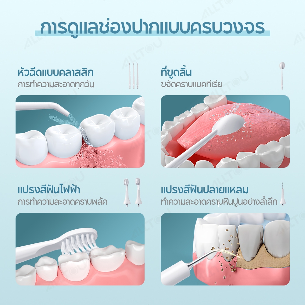 ALLTOU ไหมขัดฟันพลังน้ำ 4 IN 1 Water Flosser ถังน้ำความจุสูง 200 มล ไหมขัดฟันพลังน้ำ เครื่องขัดฟันพกพา แปรงสีฟันไฟฟ้า พอยท์แปรงสีฟัน(3โหมด + 4หัวฉีด + 2แปรงสีฟัน)