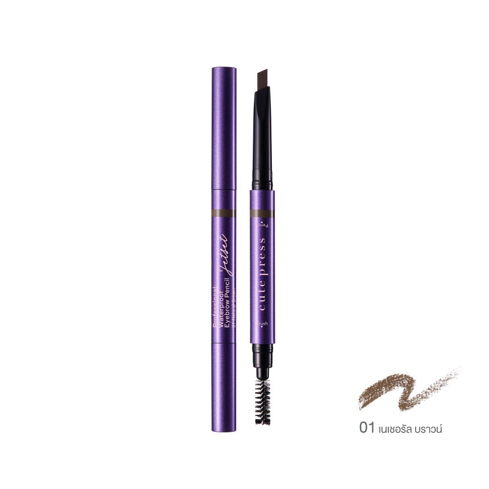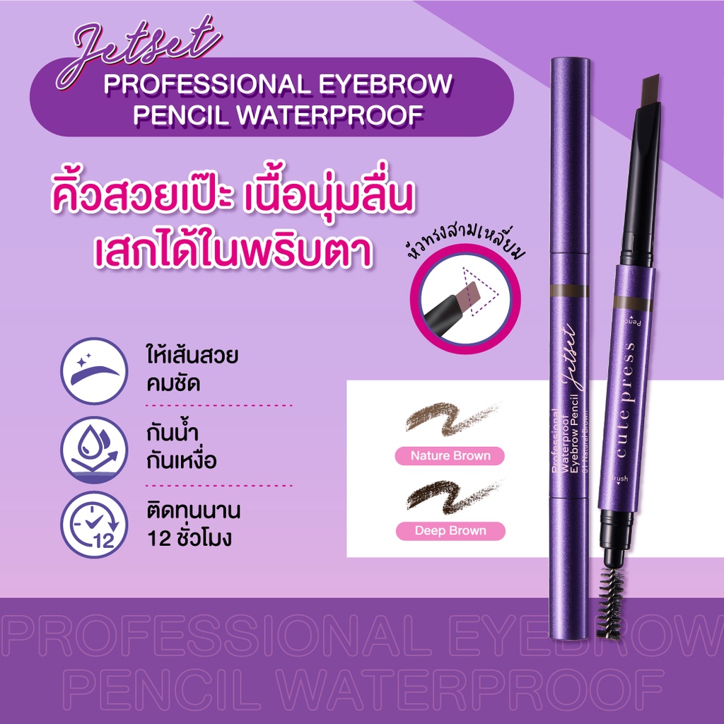 🌟 โฉมใหม่ ดินสอเขียนคิ้ว เนื้อนุ่ม คิวท์เพรส CUTE PRESS JET SET PROFESSIONAL WATERPROOF EYEBROW PENCIL 0.22กรัม