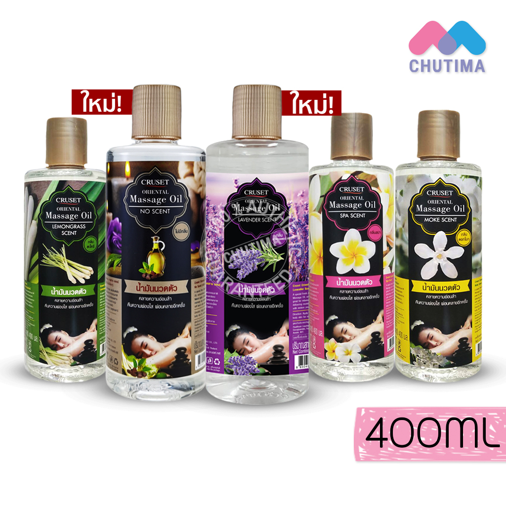 ครูเซ็ท น้ำมันนวดตัว โอเรียนทอล มาสสาจ ออยล์ กลิ่นดอกโมก/ตะไคร้/สปา/ไม่มีกลิ่น 400มล. Cruset Oriental Massage Oil 400ml.