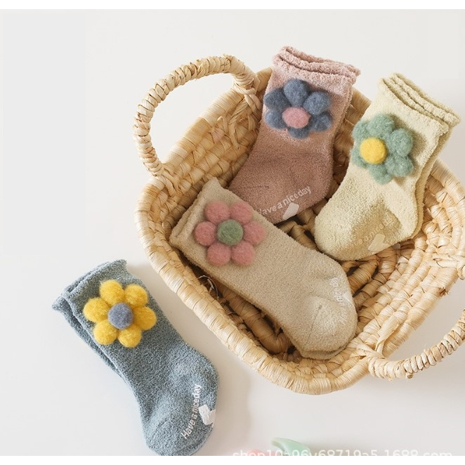 ถุงเท้าเด็ก (Sk92) - ถุงเท้าเด็กลายดอกไม้ สีสดใส