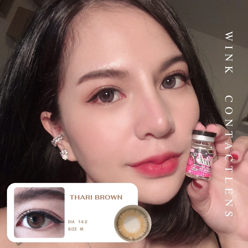 💋 สุดปัง มีค่าสายตา 💋 Wink Thari Gray Brown บิ๊กอาย สุดปัง คอนแทคเลนส์ รายเดือน มีอย แถมตลับฟรี เลนส์นิ่ม สวยปังมาก