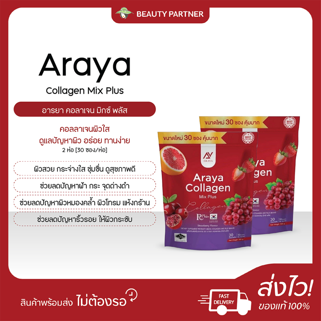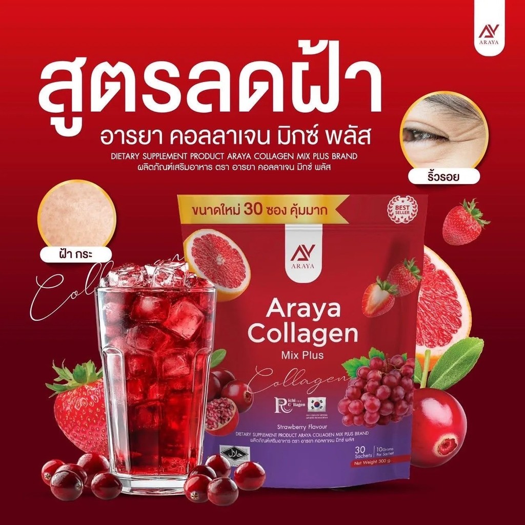Araya Collagen Mix Plus อารายา คอลลาเจน มิกซ์พลัส [30 ซอง/ห่อ] [2 ห่อ] คอลลาเจนผิวใส ดูแลปัญหาผิว อร่อย ทานง่าย