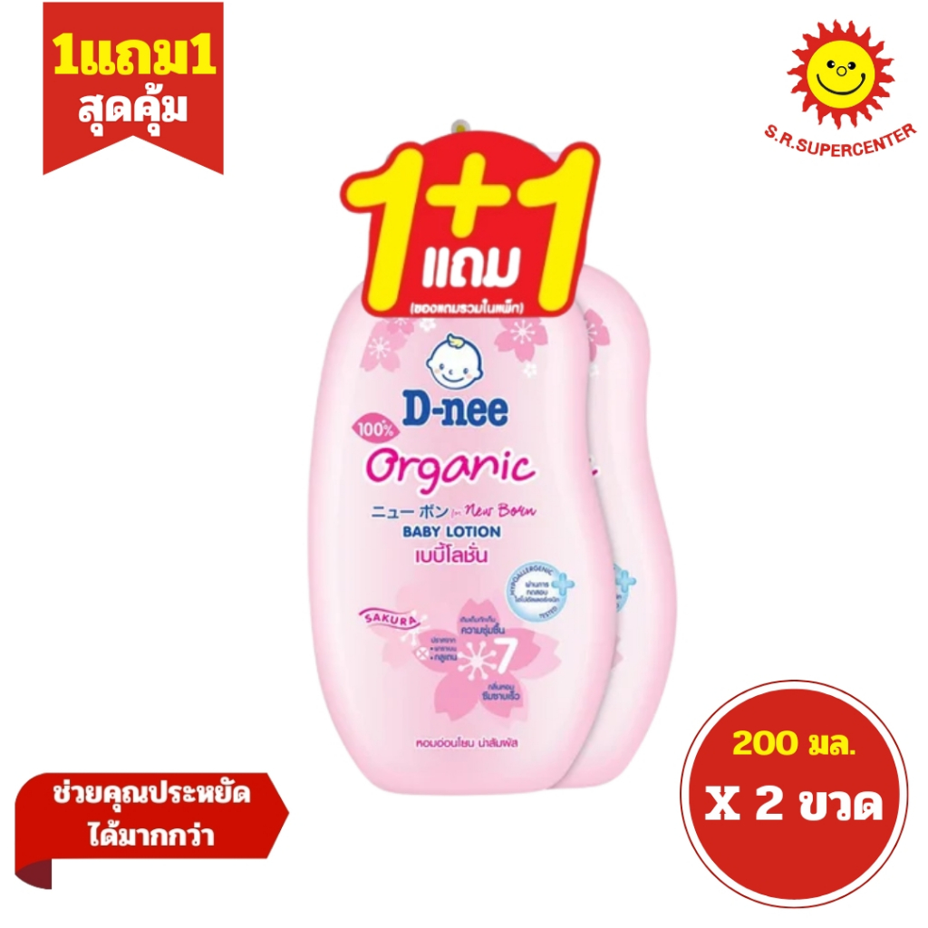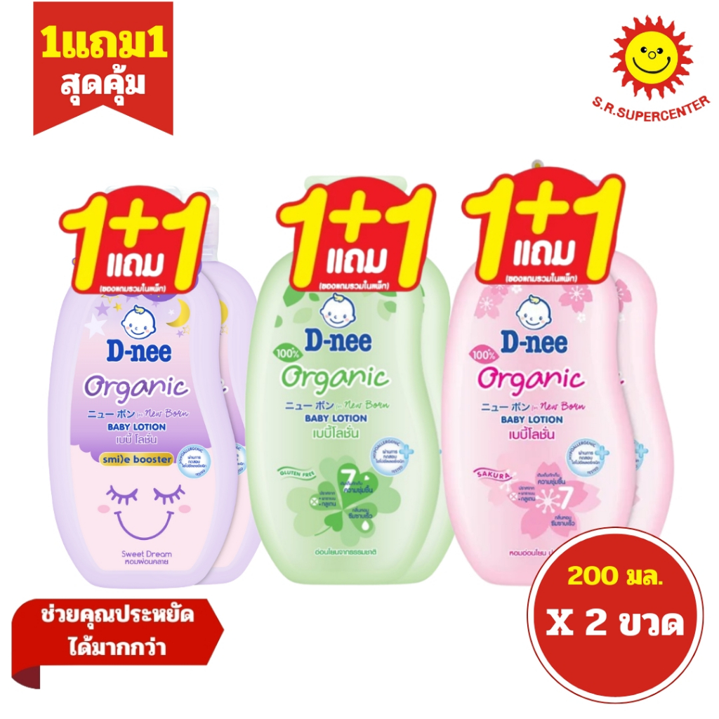 [ แพ็ค1+1 ] D-nee ดีนี่ ออร์แกนิค เบบี้โลชั่น 3 สูตร ขนาด 200 มล. (แพ็ค1+1) คละสูตร