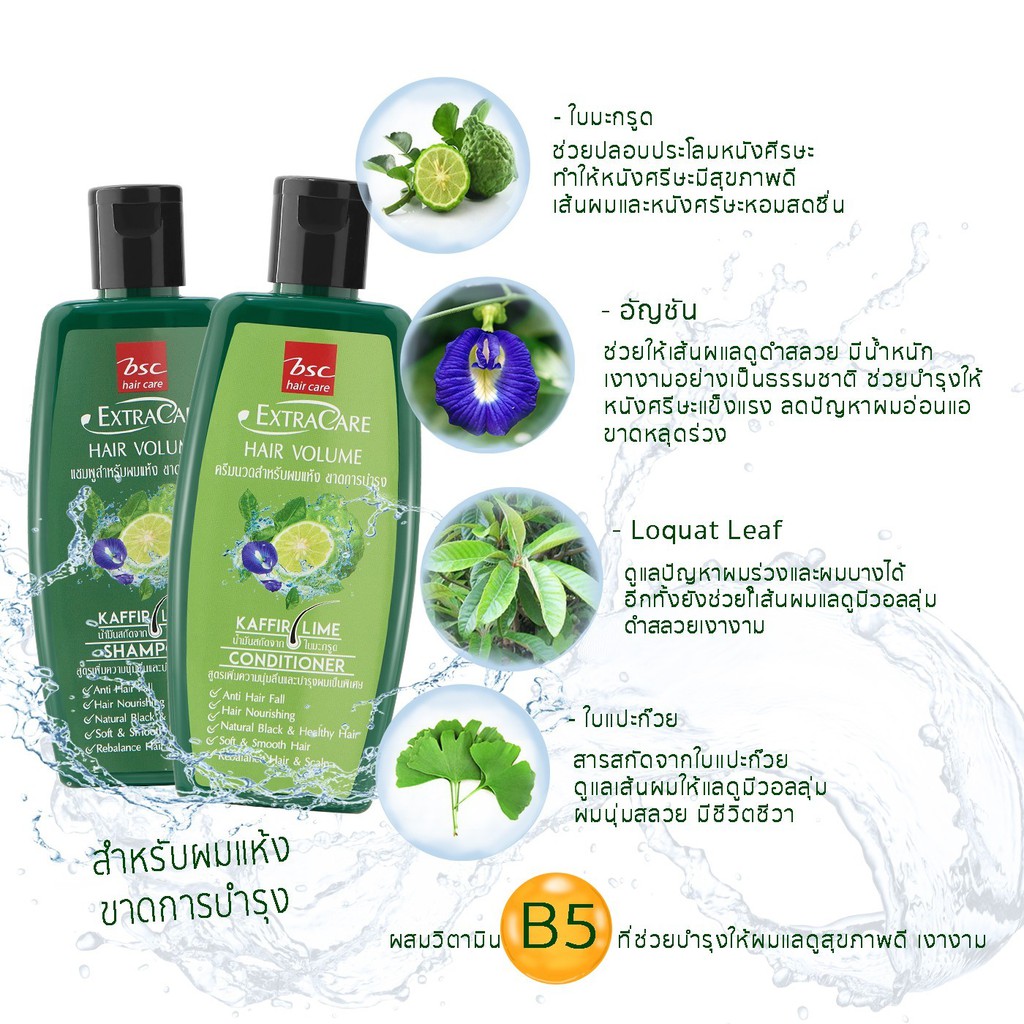 BSC EXTRA CARE HAIR VOLUME CONDITIONER สกัดจากมะกรูด อัญชัน ครีมนวดผมสำหรับผมแห้งเสีย ขาดน้ำหนัก