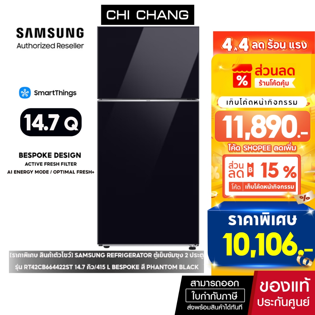 [ราคาพิเศษ สินค้าตัวโชว์] SAMSUNG REFRIGERATOR ตู้เย็นซัมซุง 2 ประตู รุ่น RT42CB664422ST 14.7 คิว/415 L BESPOKE สีดำเงา