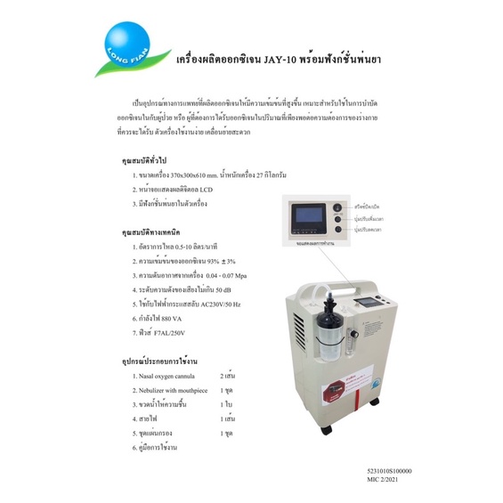 🔥พร้อมส่ง ฟรีของแถม🔥 เครื่องผลิตออกซิเจนขนาด 10 ลิตร ยี่ห้อ Longfian รุ่น JAY-10BW (สามารถพ่นยาได้)
