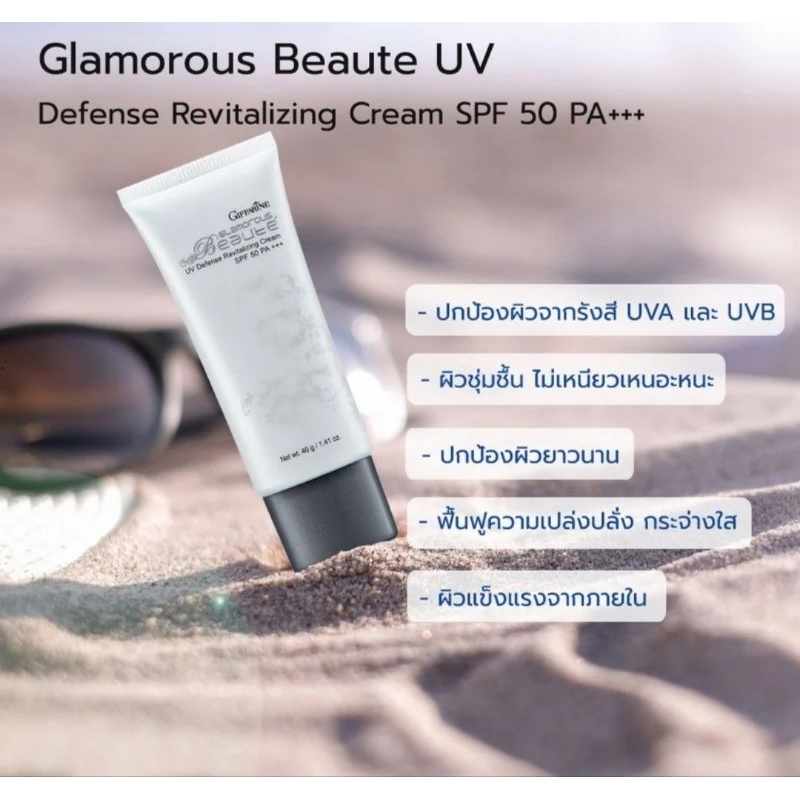 ครีมกันแดด กลามอรัสบูเต้ยูวี ดีเฟนซ์รีไวทาไลซิ่ง ครีมกิฟฟารีน เหมาะสำหรับผิวธรรมดาและผิวแห้ง