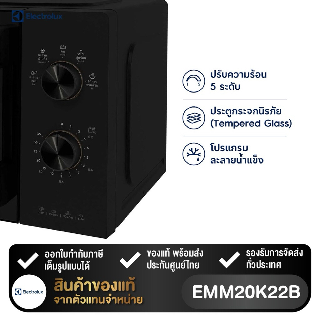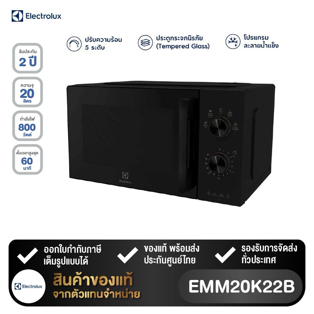 ELECTROLUX ไมโครเวฟ ความจุ 20 ลิตร รุ่น EMM20K22B สีดำ กำลังไฟไมโครเวฟ 800 วัตต์