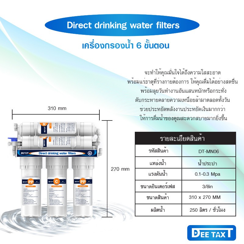 เครื่องกรองน้ำดื่ม 6 ขั้นตอน รุ่น น้ำแร่ (Mineral) พร้อมอุปกรณ์ครบชุด (พร้อมคู่มือการติดตั้ง)