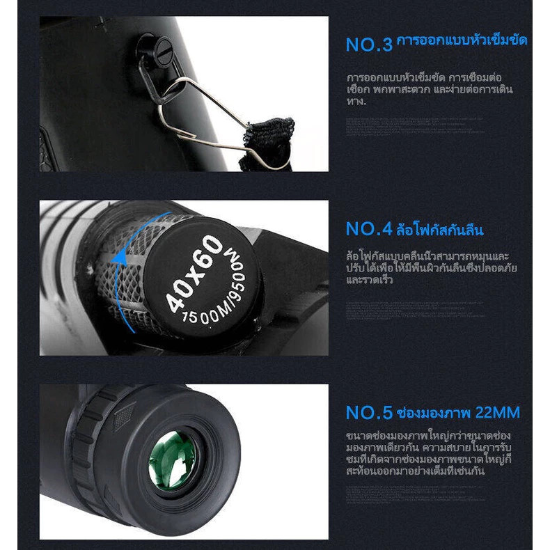 กล้องทรรศน์ 40 X 60 ตาข้างเดียวที่มีกำลังขยาย ใช้กลางคืนได้ กล้องมองกลางคืน กล้องส่องนก G3230