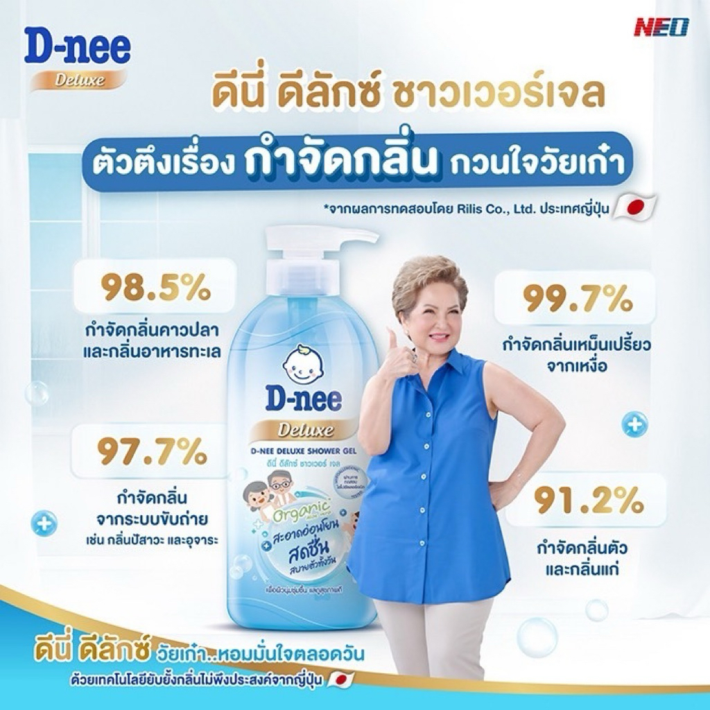 D-nee ดีนี่ ดีลักซ์ ชาวเวอร์ เจล 450 มล. X1, สารสกัดลูกพลับญี่ปุ่นช่วยยับยั้งกลิ่นกาย ครีมอาบน้ำ สบู่เหลว มีสีให้เลือก