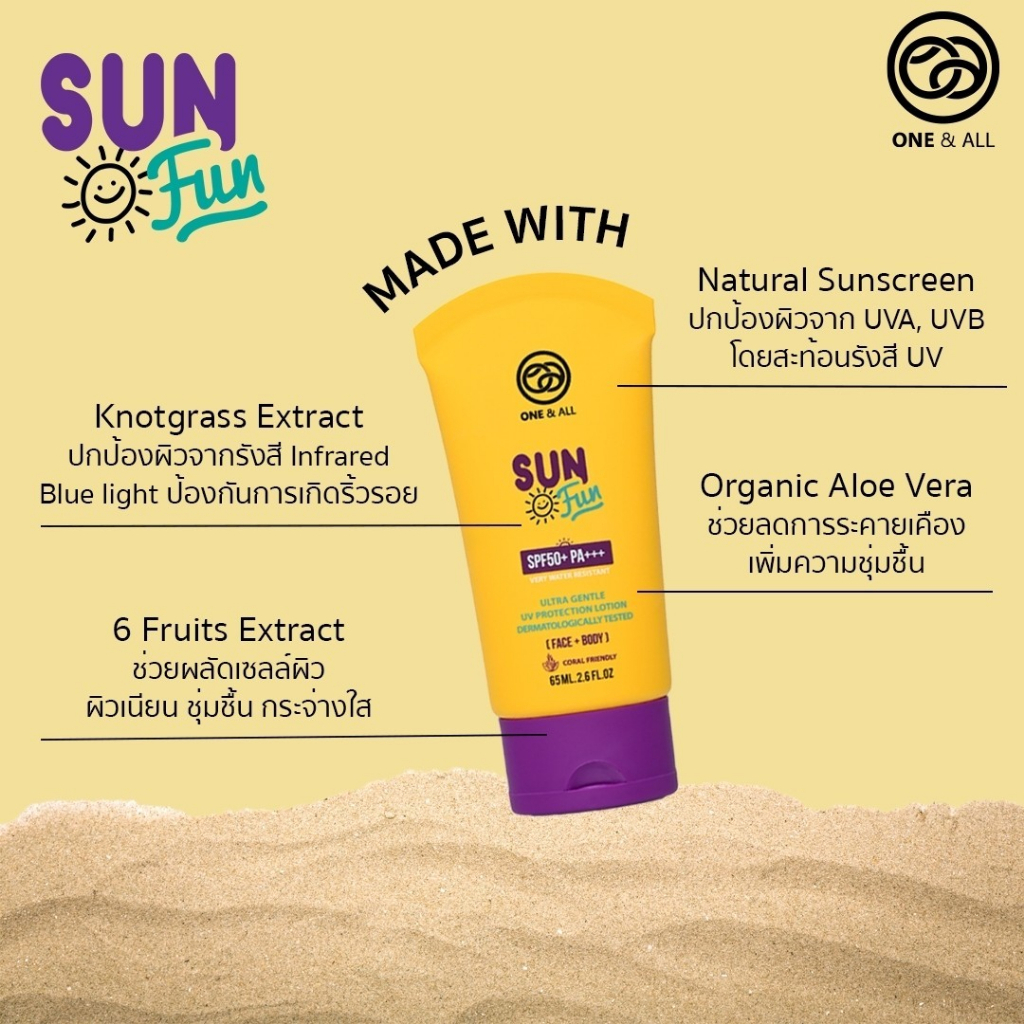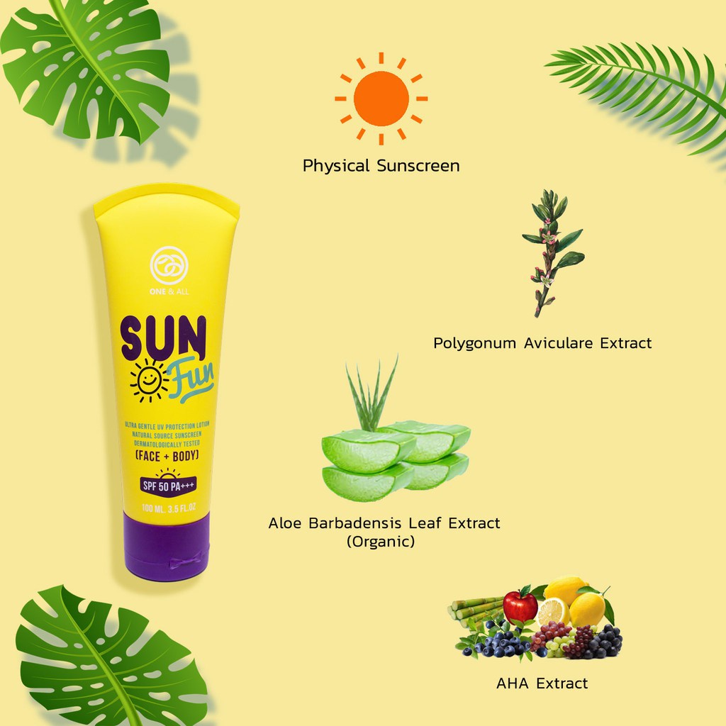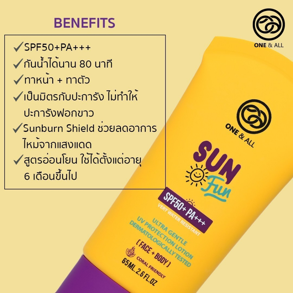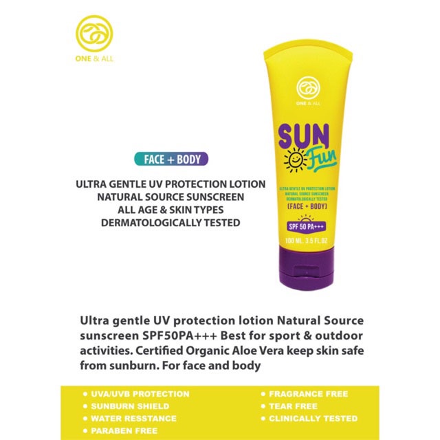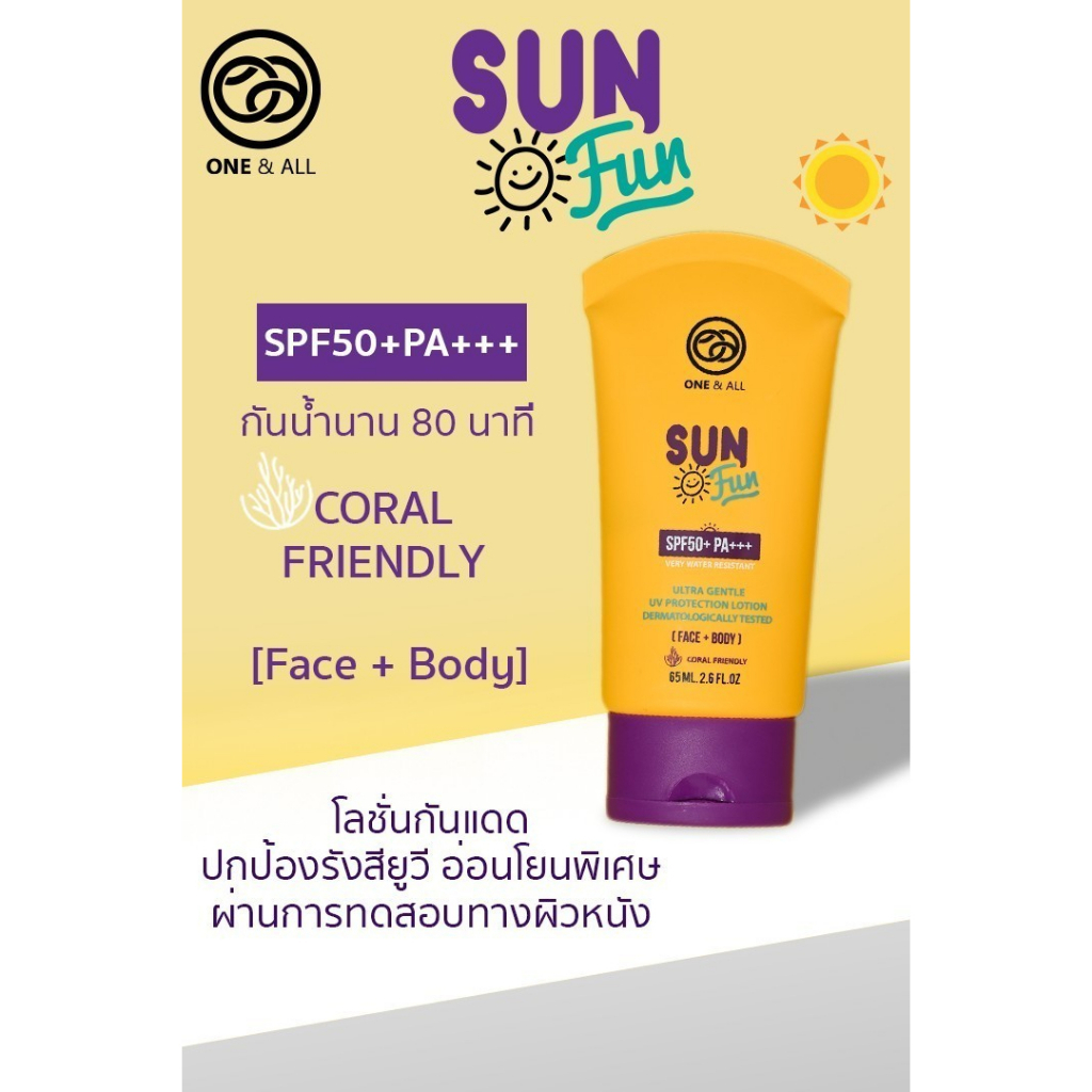 One & All Sun Fun (20ml) Ultra gentle UV protection lotion SPF50+PA+++(Face+Body) ครีมกันแดดสำหรับผิวหน้าและผิวกาย