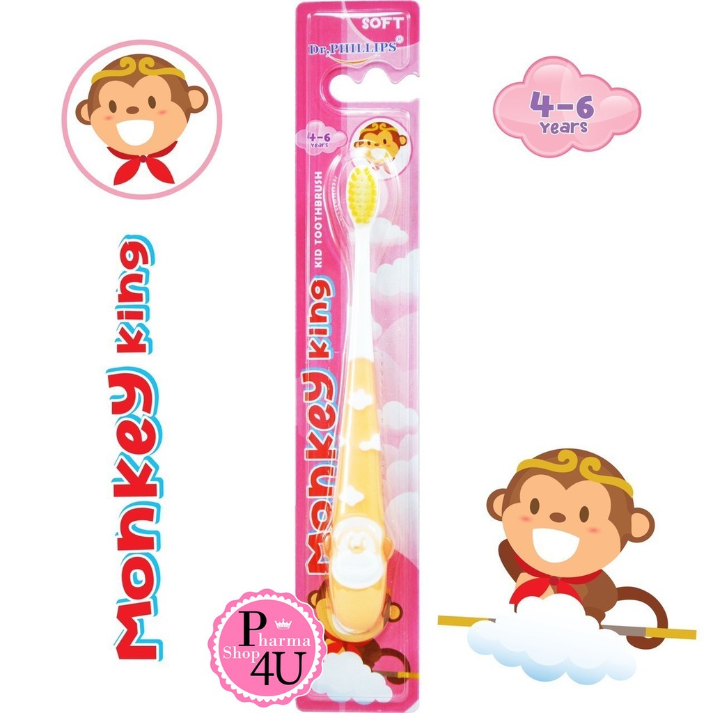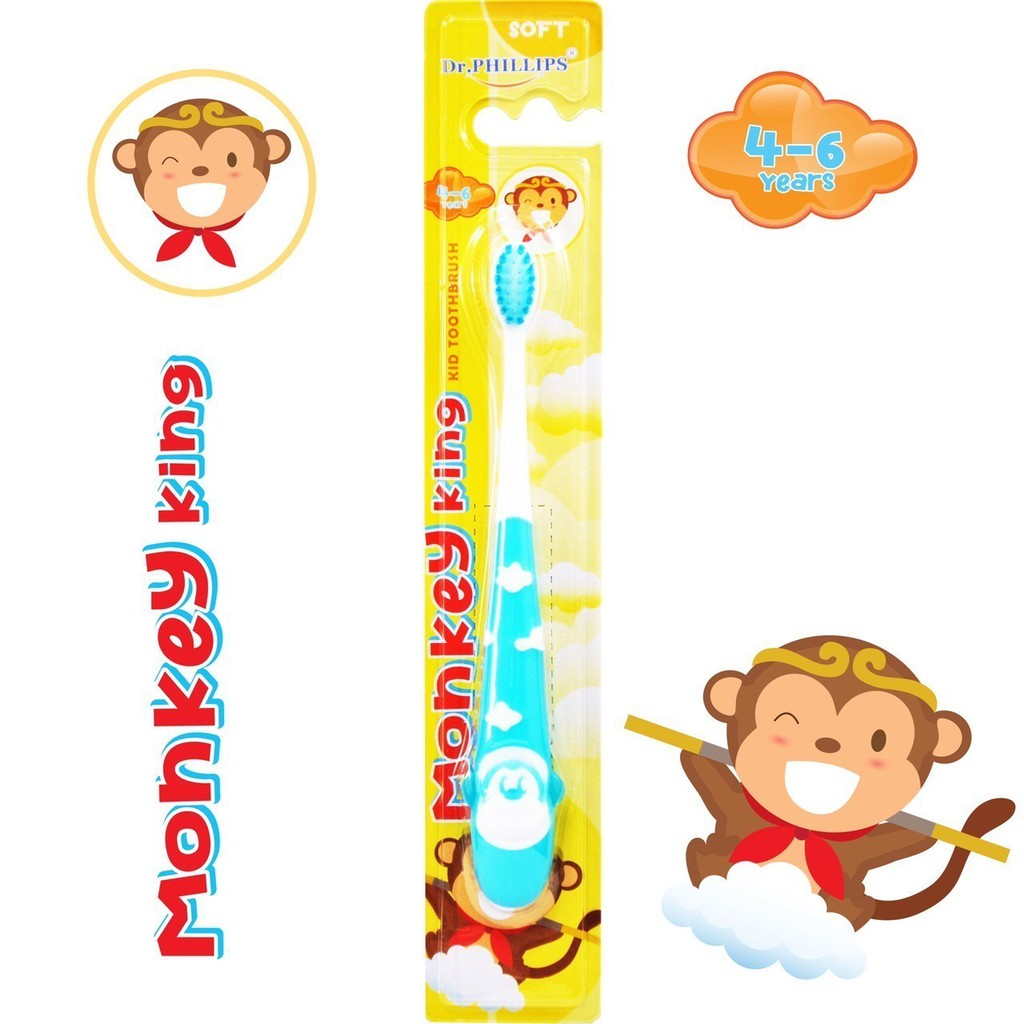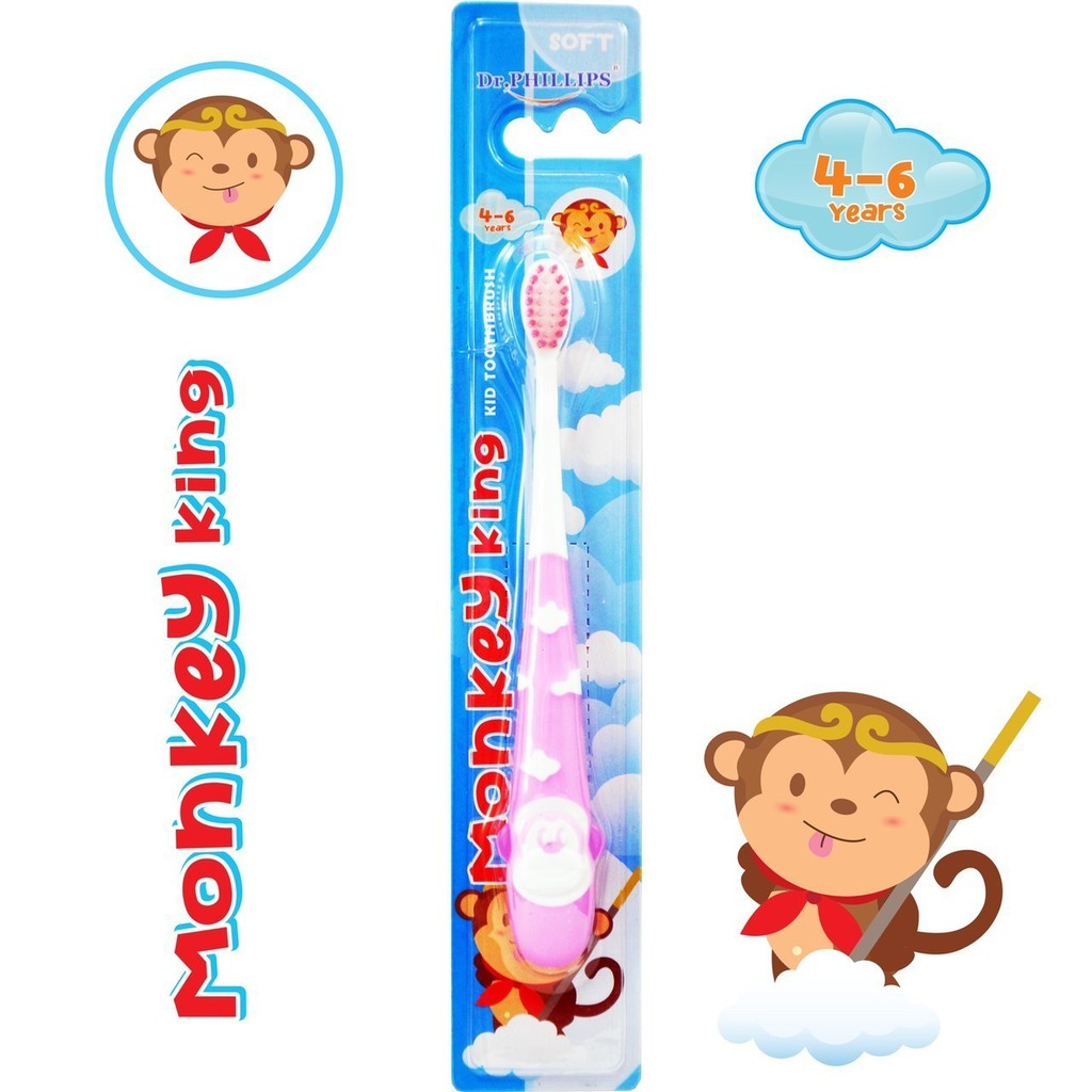DR.PHILLIPS MONKEY KING แปรงสีฟันเด็ก 4-6 ขวบ ลายการ์ตูน หลากสี คละลาย[8943]