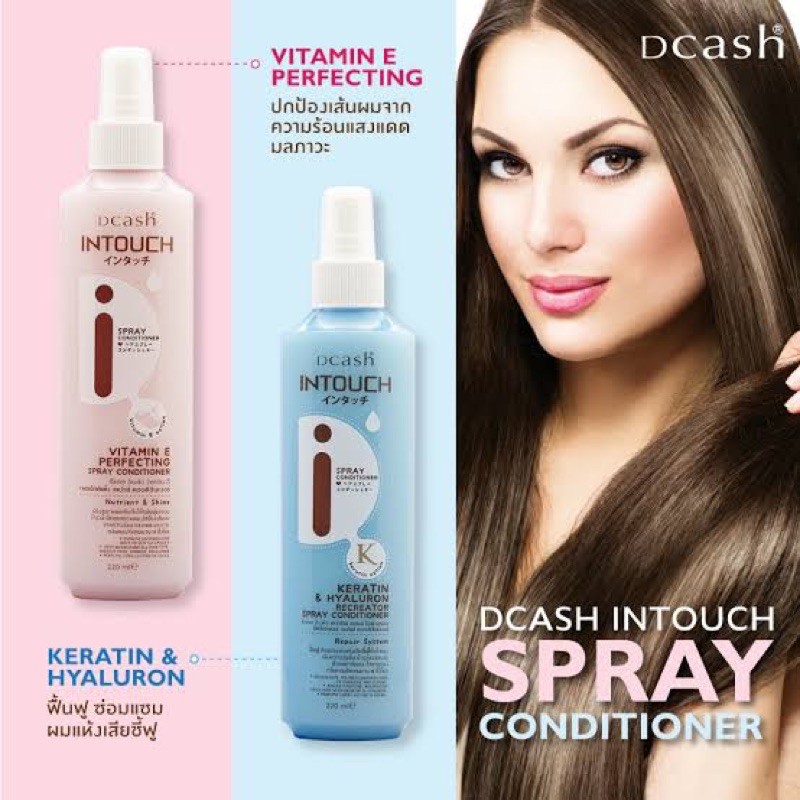 Dcash ดีแคช อินทัช สเปรย์อาหารผม บำรุงเส้นผม สีชมพู สูตรวิตามินอี 220ml