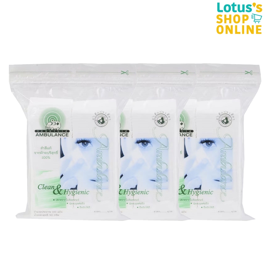 [ทั้งหมด 3 แพ็ค] รถพยาบาล สำลีแผ่นเดี่ยว 100 แผ่น AMBULANCE COTTON PAD 100 SHEET