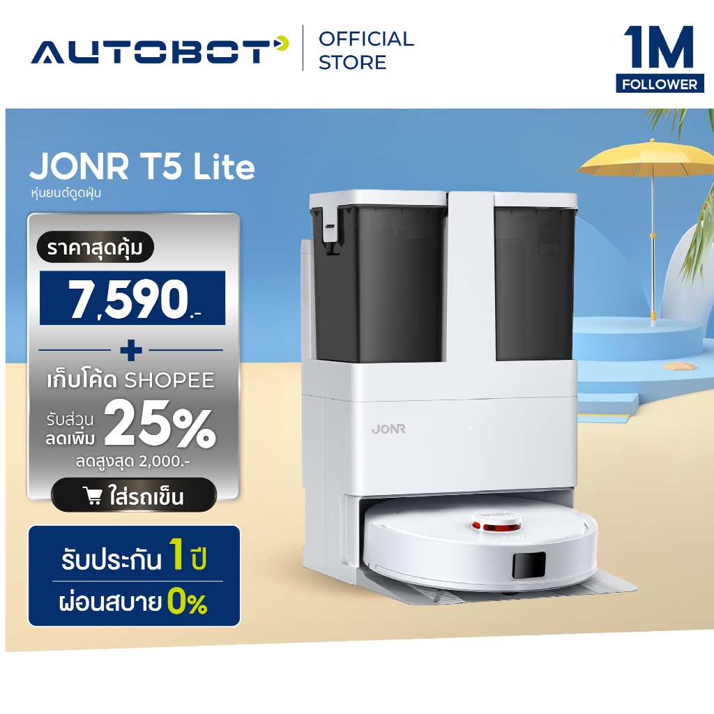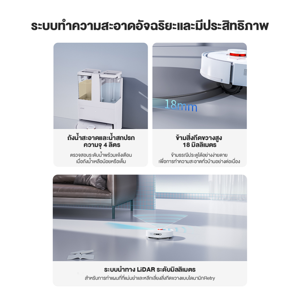𝗔𝗨𝗧𝗢𝗕𝗢𝗧 x JONR T5 Lite หุ่นยนต์ดูดถู 2-in-1 ปีนสิ่งกีดขวาง 18 มม. ควบคุมผ่านแอป Mi