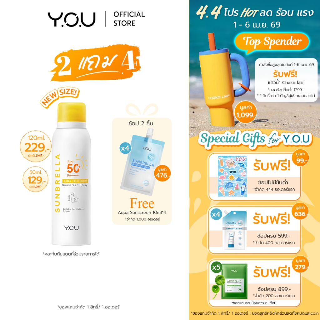 YOU SUNBRELLA Airy Outdoor Sunscreen Spray SPF 50+ PA ++++ สเปรย์กันแดด เนื้อละอองบางเบา สำหรับผิวหน้าและผิวกาย