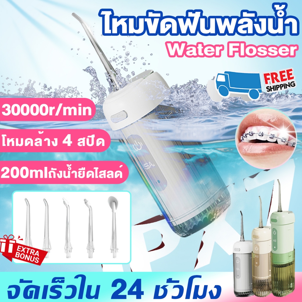 🥇รับประกัน5ปี🥇 ไหมขัดฟันพลังน้ำ 4 โหมด ขจัดคราบพลัค 99.99% IPX7 เครื่องทำความสะอาดฟัน เครื่องล้างฟันพกพา Water Flosser