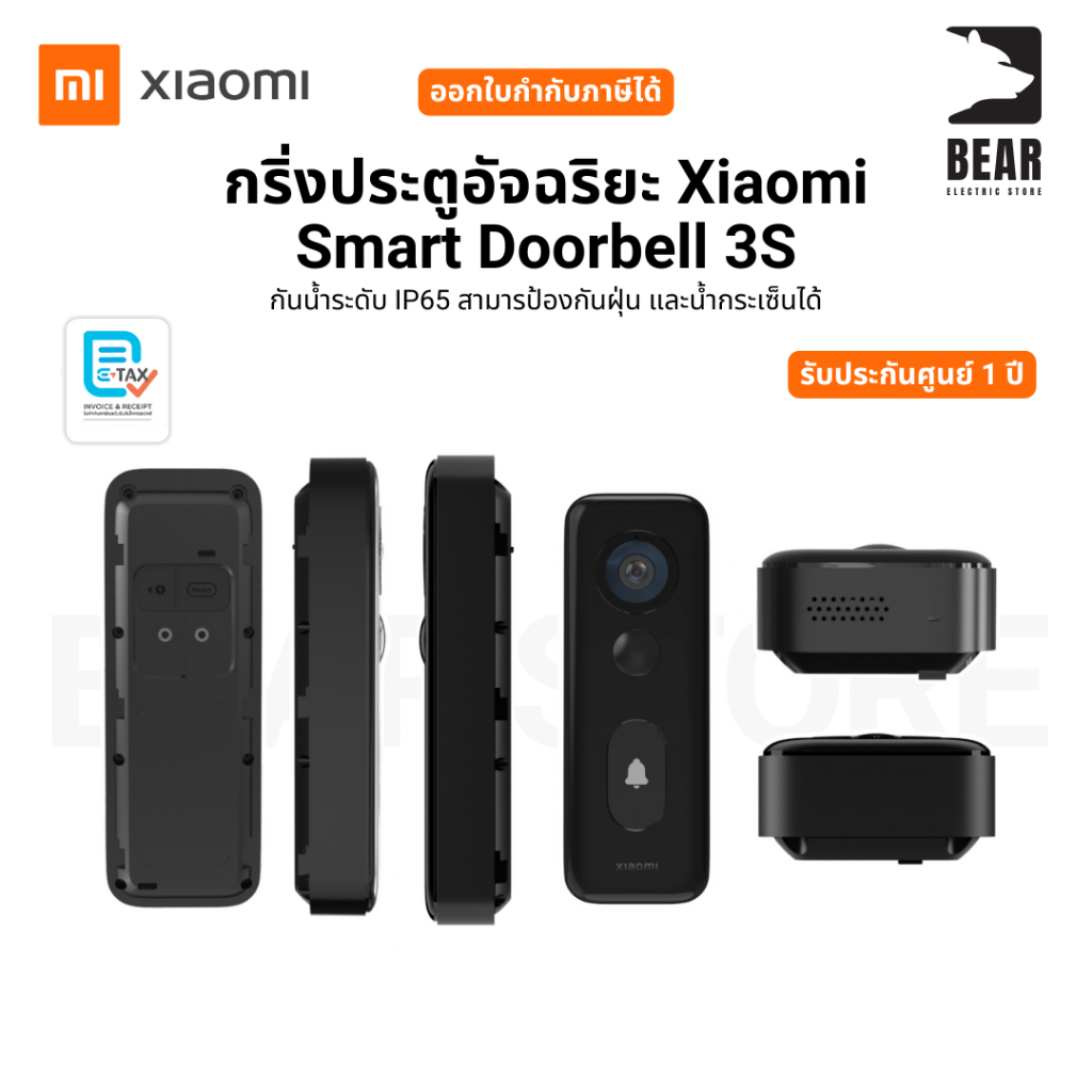 กริ่งประตูอัจฉริยะ Xiaomi Smart Doorbell 3S กันน้ำระดับ IP65 สามารป้องกันฝุ่น รับประกัน 1 ปี