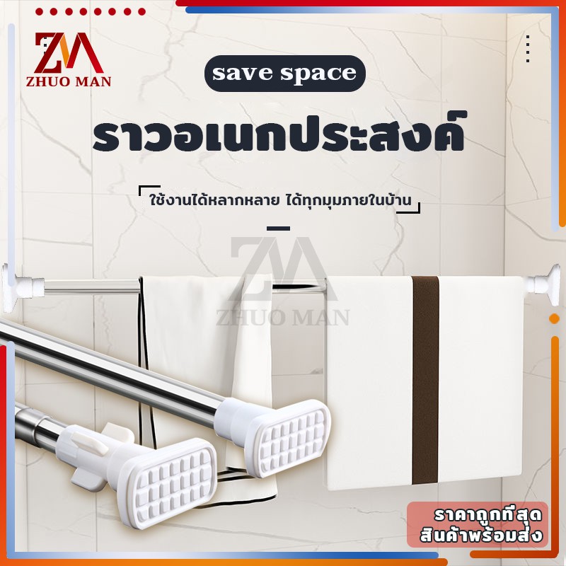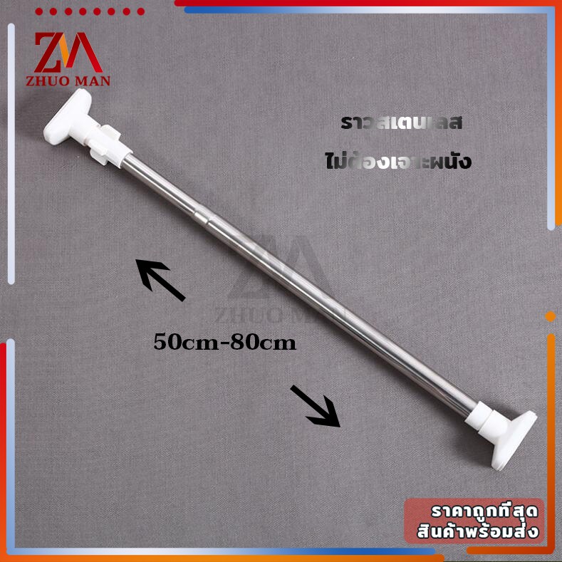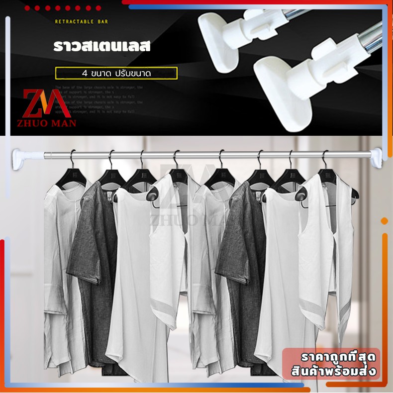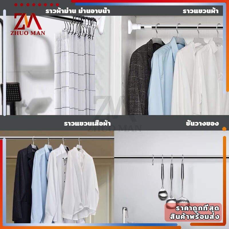 ราวม่าน ราวม่านสแตนเลส ปรับขนาดได้ ไม่ต้องเจาะผนัง ติดตั้งง่ายได้ด้วยตนเอง วัสดุสแตนเลส ไร้สนิม มี4ขนาด
