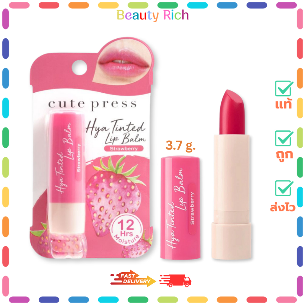 (1 แท่ง) Cute Press Hya Tinted Lip Balm คิวท์เพรส ไฮยา ทินท์ ลิป บาล์ม #03 Strawberry (3.7 g.)