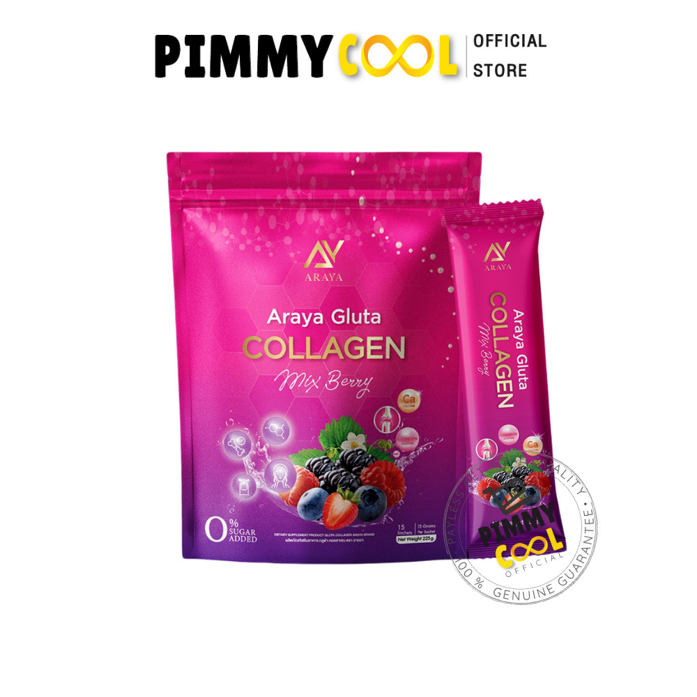 แท้ ✅ Araya Gluta Collagen Mixberry อารยา คอลลาเจน มิกซ์เบอร์รี่ ผลิตภัณฑ์เสริมอาหาร 1 ห่อ 30 ซอง