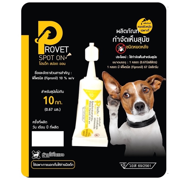 Provet ผลิตภัณฑ์หยอดกำจัดเห็บหมัด สำหรับสุนัขและแมว 2-10 kg